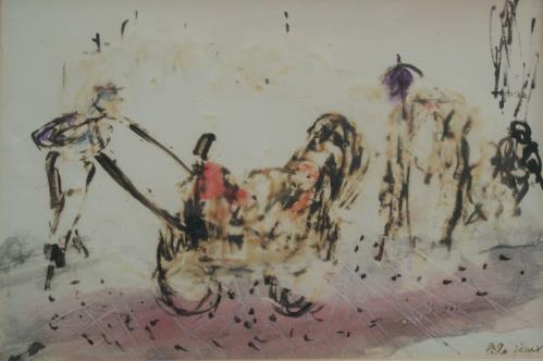1 aquarelle sur papier de Lélo Fiaux 1911-1964 "Personnages et poussette" sbd 16x24 cm.