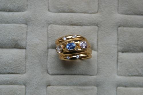 1 *bague avec saphirs multicolores pour 2.10 ct. & 0.12 ct. de diamants