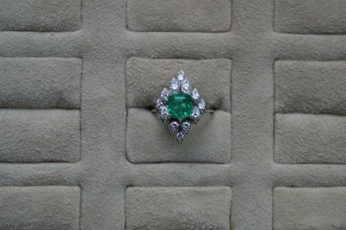 1 *bague avec une émeraude cut de 2.16 ct et 0.84 ct. de diamants ronds
