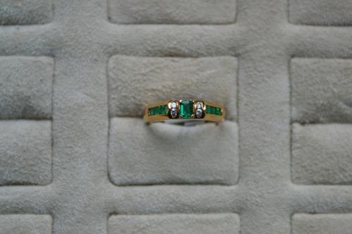 1 *bague en or jaune .750 avec 0.49 ct d'émeraudes de Colombie et 0.08 ct de diamants