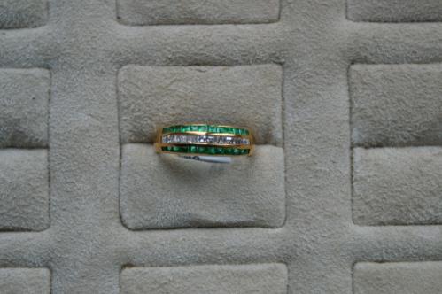 1 *bague en or jaune .750 avec 0.55 ct d'émeraudes et 0.34 ct de diamants