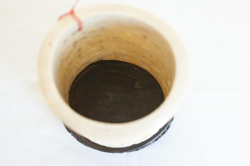 1 bitong ou porte-pinceau en ivoire de Canton ajouré à décor de chasseurs dans la campagne sur un fo