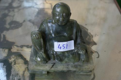 1 Bouddha du bonheur en marbre vert H. 11x11.5x6 cm