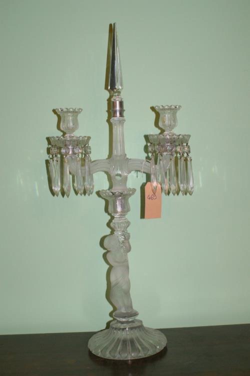 1 chandelier en cristal gravé à l'acide représentant un bambin soutenant une corne transformée en bougeoir H. 62.5 cm.