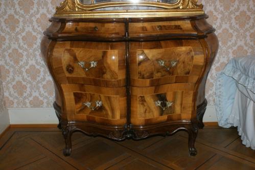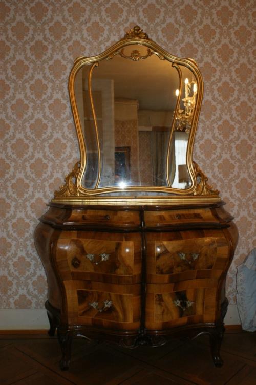 1 commode allemande de style baroque à 4 tiroirs avec un miroir à cadre en bois doré H. 178x114x53 c