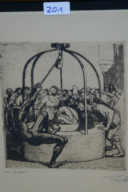1 eau-forte de Fritz Gilsi (1878-1961) "La Vérité - La descente dans le puits" sbd au crayon 18.5x17
