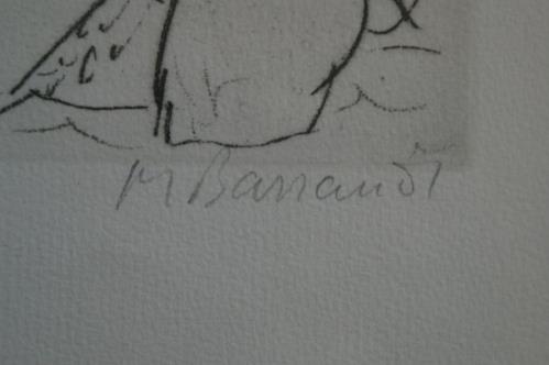 1 gravure sur cuivre de Maurice Barraud 1889-1955 "couple dans végétation" sbd au crayon M Barraud H