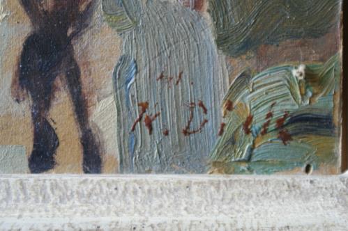 1 huile sur isorel de M Dick "Scène villageoise fribourgeoise" sbd. 41x55.5 cm.