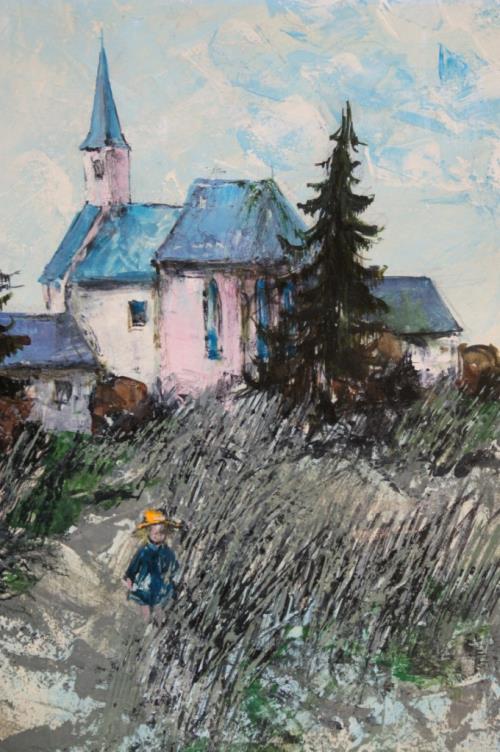 1 huile sur papier de Pierre Nolot "Derrière l'église" datée au dos 22.5.69 sbd. H.27.4x22 cm.