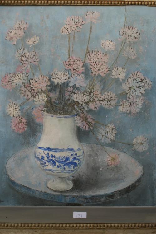 1 huile sur toile de Pierre Nolot "Bouquet aux chrysanthèmes" sbg et daté 1966 au dos H. 55x46.5 cm