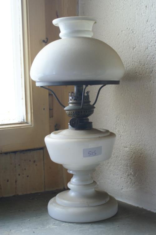 1 lampe à pétrole de table à pied en opaline blanche. H. totale 36 cm.