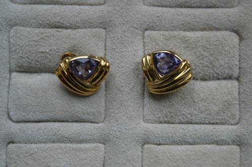 1 *paire de boucles d'oreilles en or .750 avec améthystes