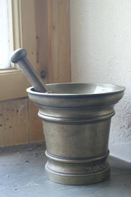 1 pilon et mortier en bronze H. 13.8 cm. D. 15.5 cm. L. du pilon 22 cm.