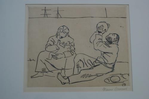 1 pointe sèche de Maurice Barraud 1889-1955 "couple avec enfant au sein" sbd au crayon M Barraud H. 22.2x27.5 cm.