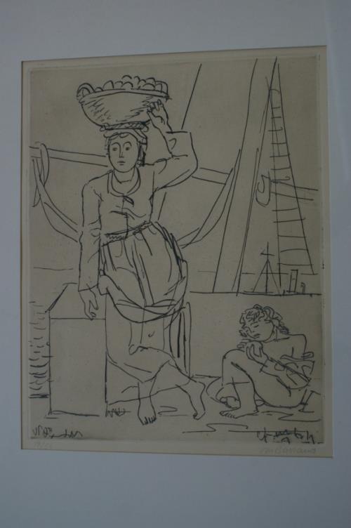 1 pointe sèche de Maurice Barraud 1889-1955 "Dame à la corbeille de fruits" 18/50 sbd au crayon M Ba
