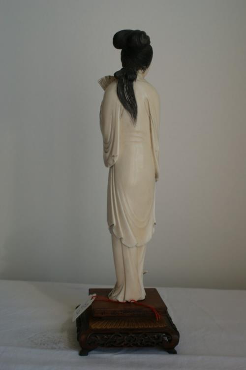 1 sculpture en ivoire de Chine représentant une jeune femme à l'éventail H. 21.5 cm.