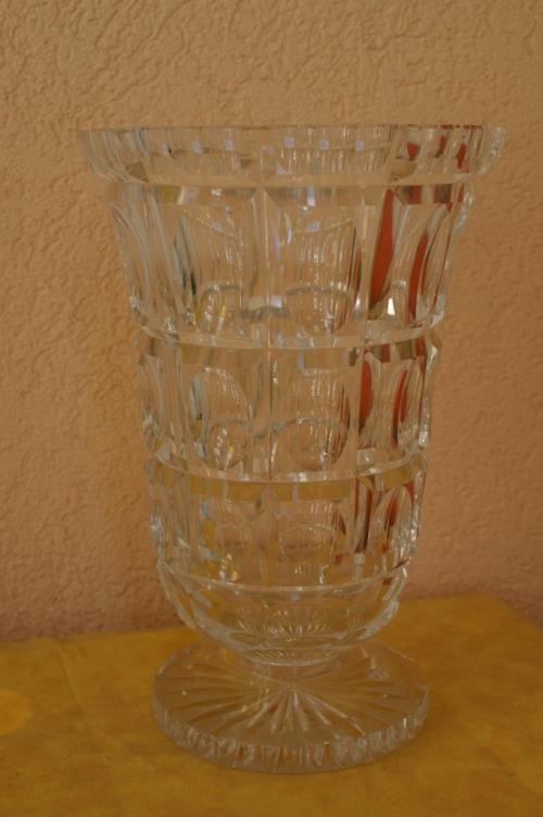1 vase sur piédouche en cristal taillé de Val-Saint Lambert H. 32.5 cm. D. 21.9 cm. (mini ébréchures