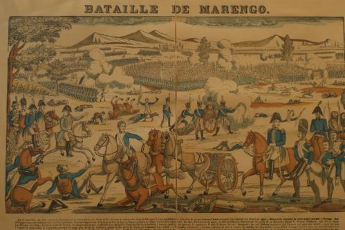 2 images de A. Epinal, gravures en couleurs "Bataille de la Moscowa" et "Bataille de Marengo" H. tot