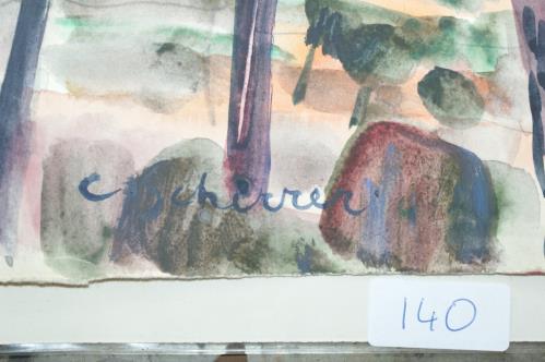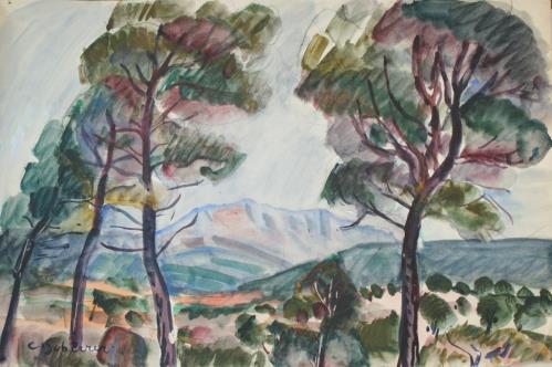 1 aquarelle de C. Scherrer "La montagne Sainte Victoire" Aix en Provence sbg. en noir H. 32.5x50 cm.