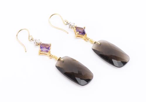En suite une paire de pendants d'oreilles en argent .925 et rodié noir avec tanzanites et pierres de couleur CZ .