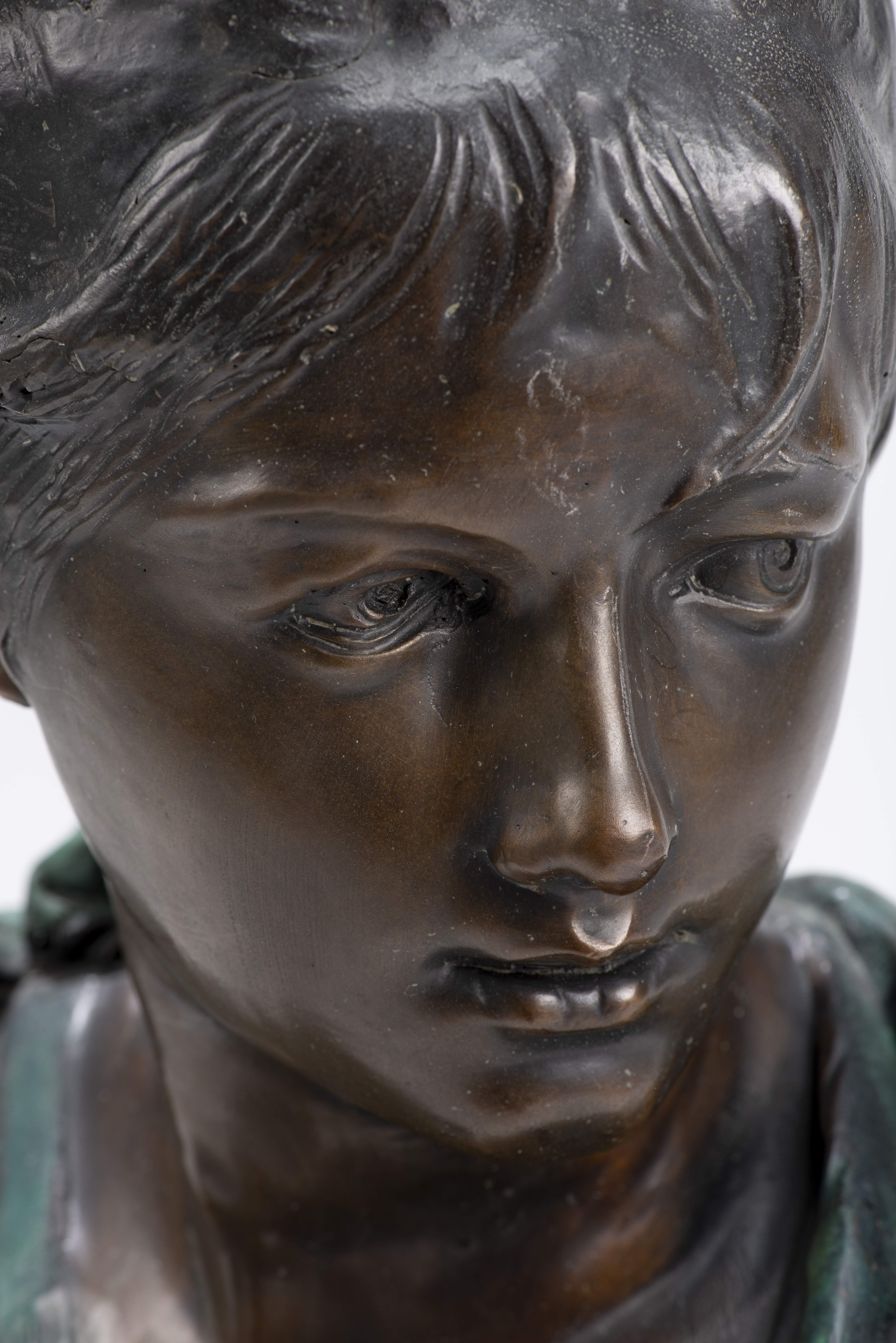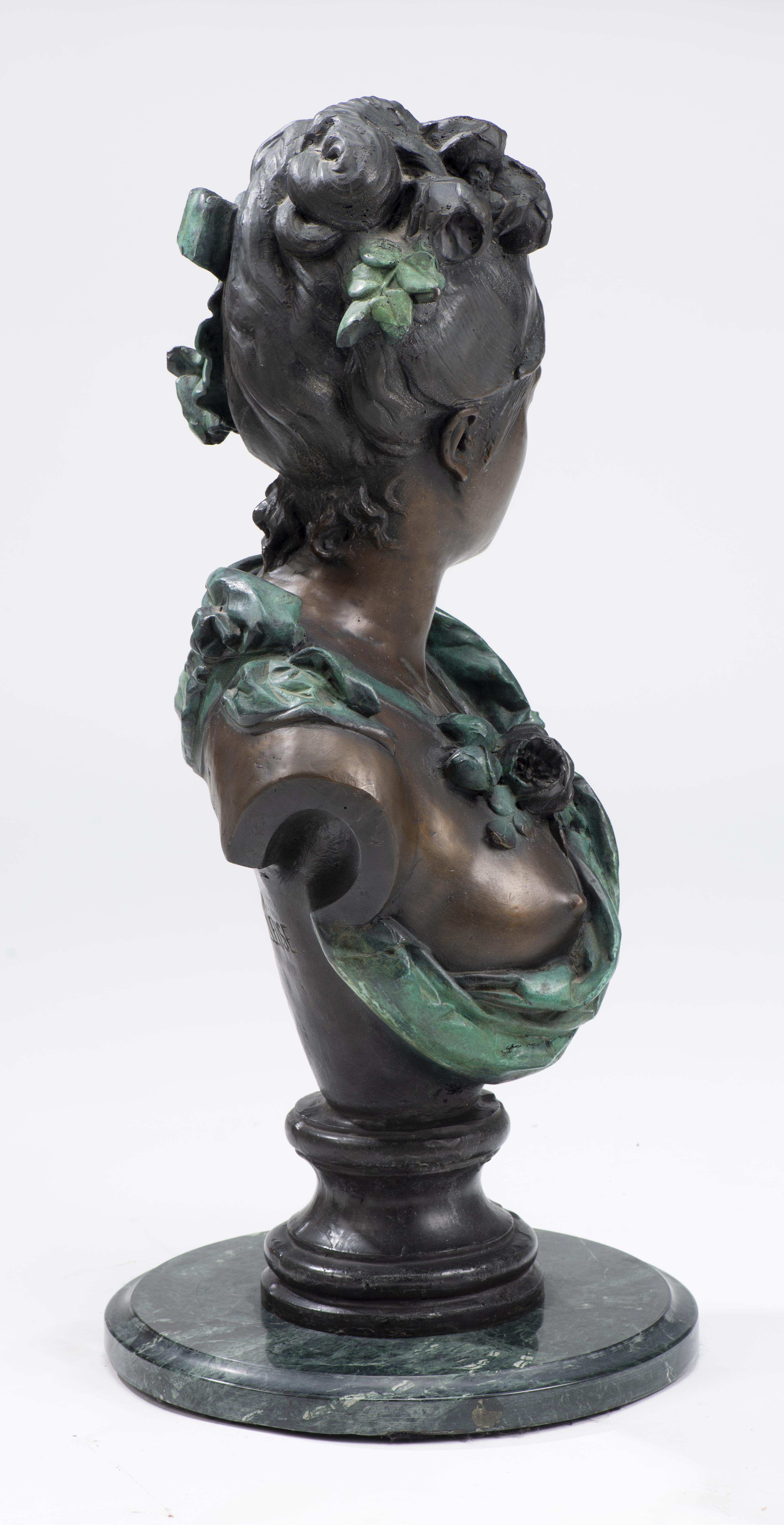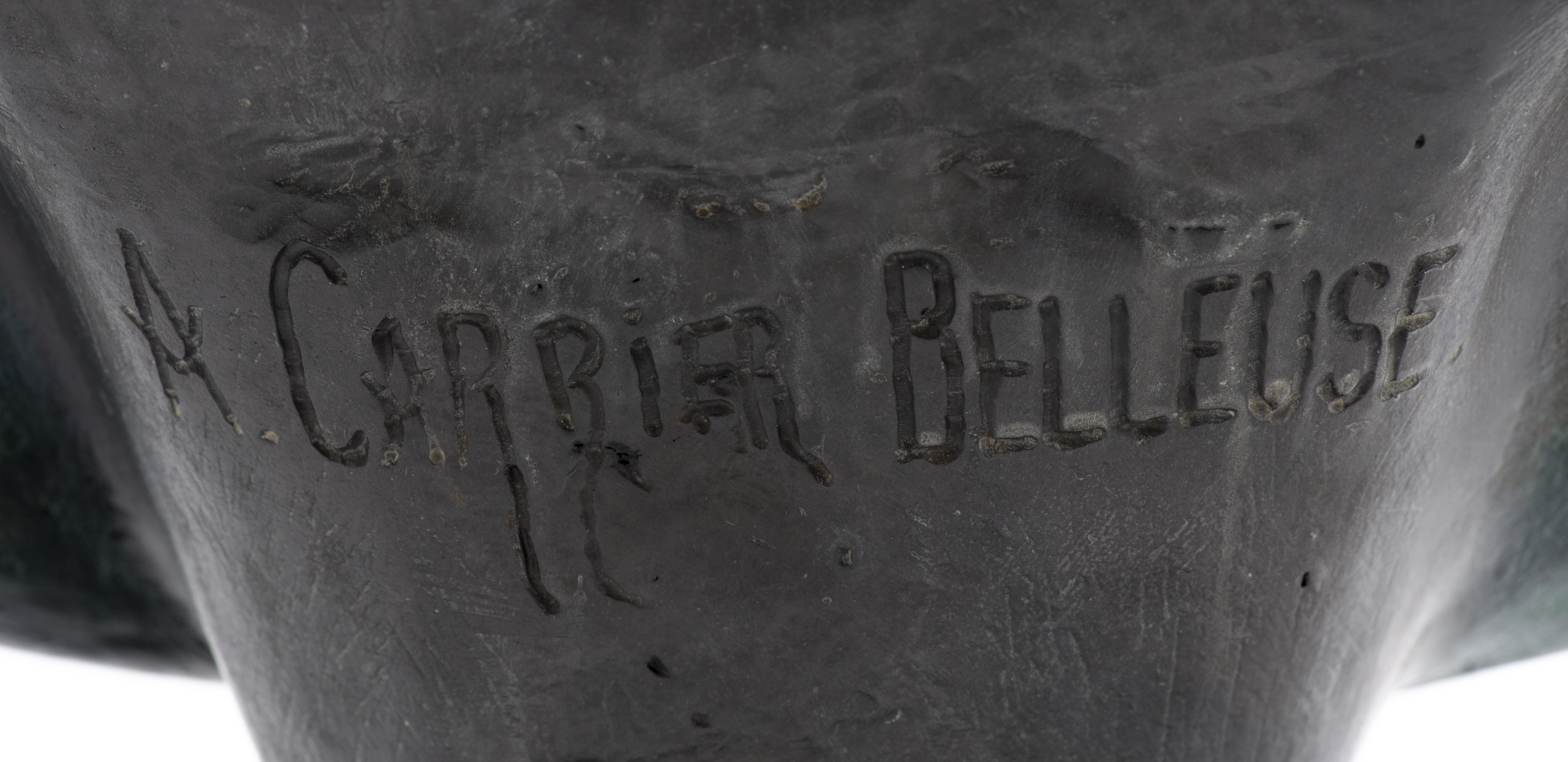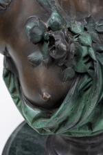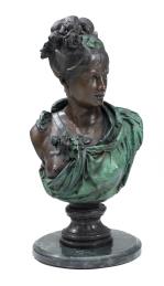 Albert-Ernest CARRIER- BELLEUSE (1824-1887)" Buste de jeune fille au décolleté", fonte de bronze au sable à 2 patines signé au dos.