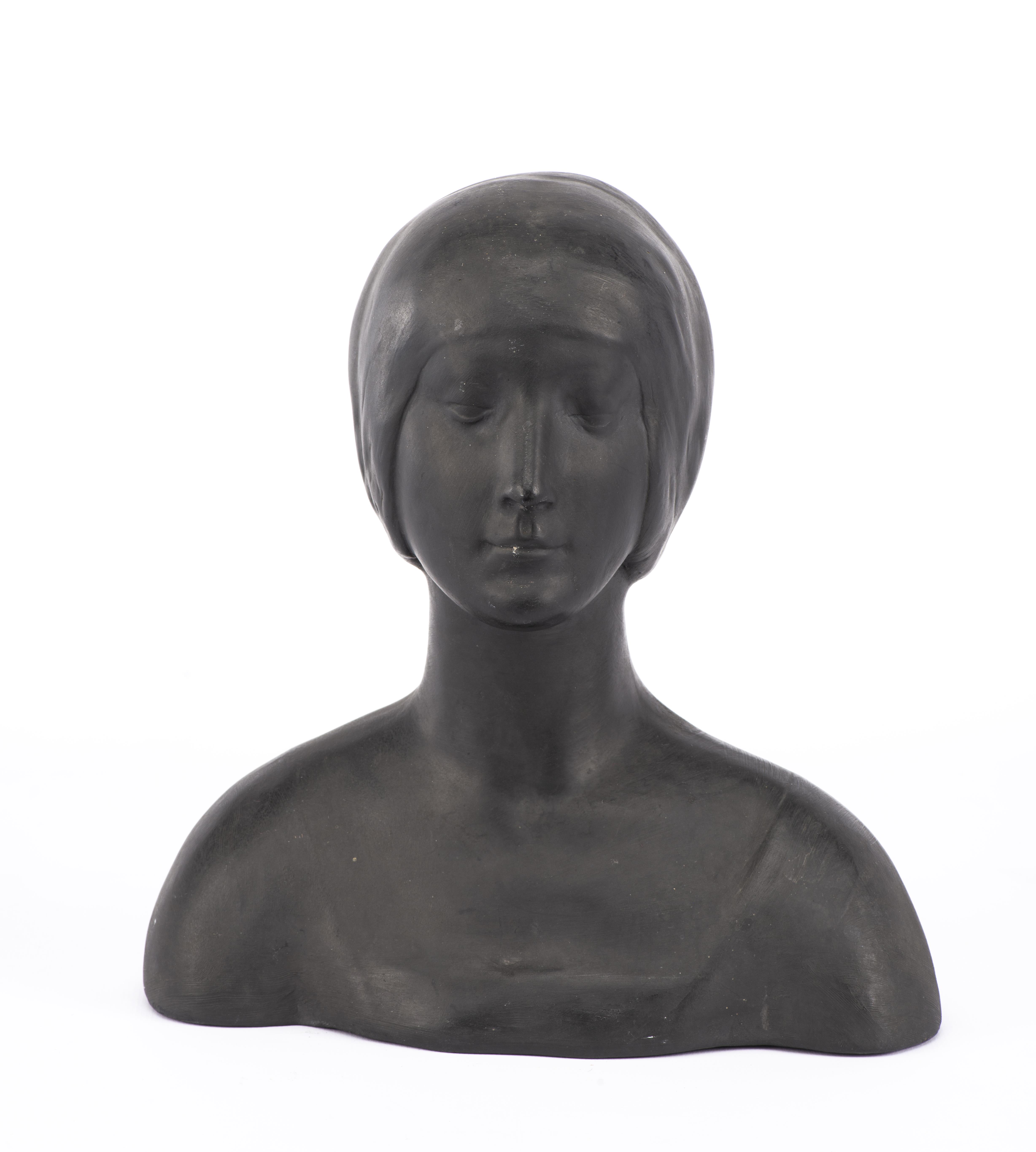 Lauritz HJORTH (1834-1912) à Bornholm Danemark, buste de jeune femme en terre cuite noire. cachet au dos n° 567.