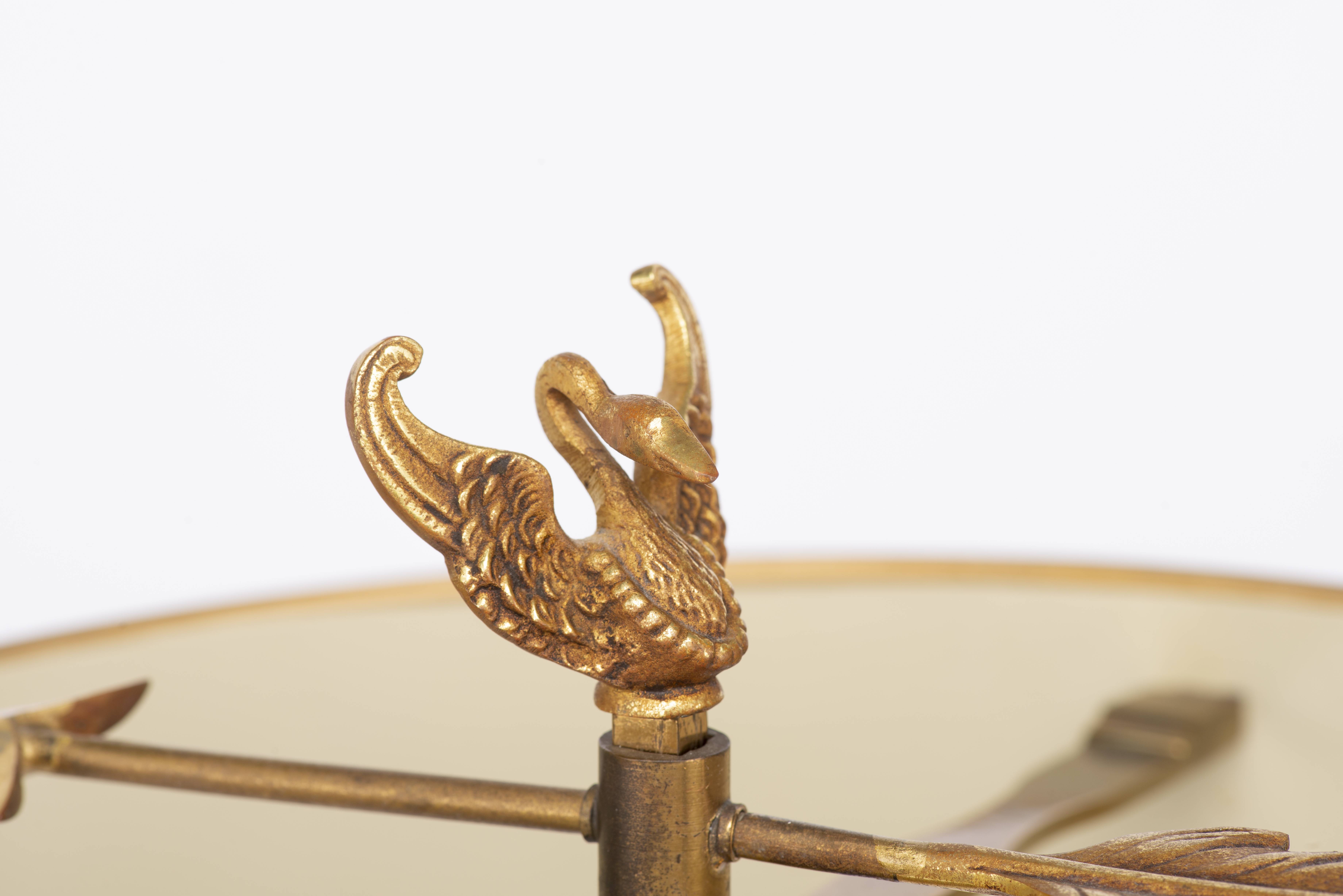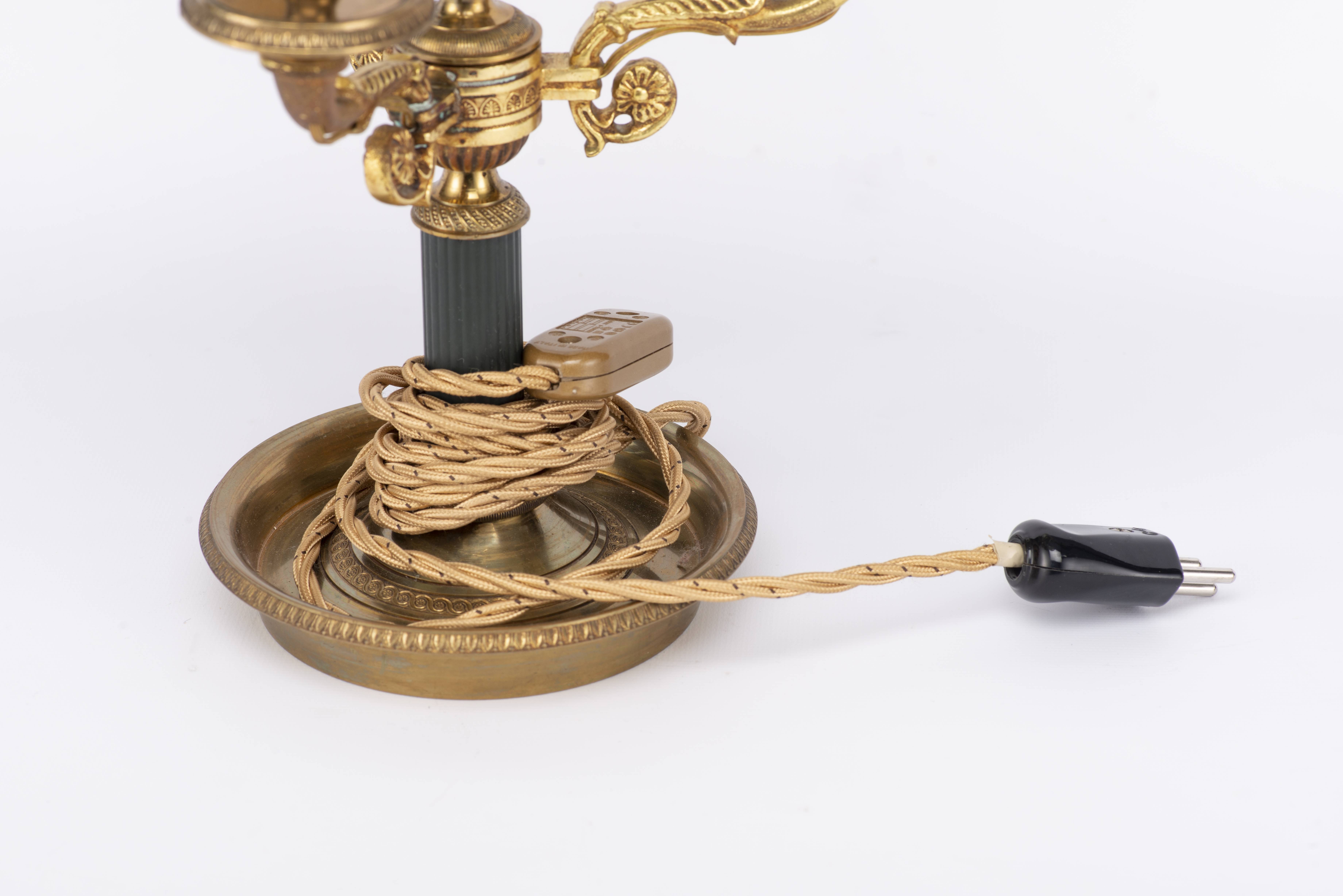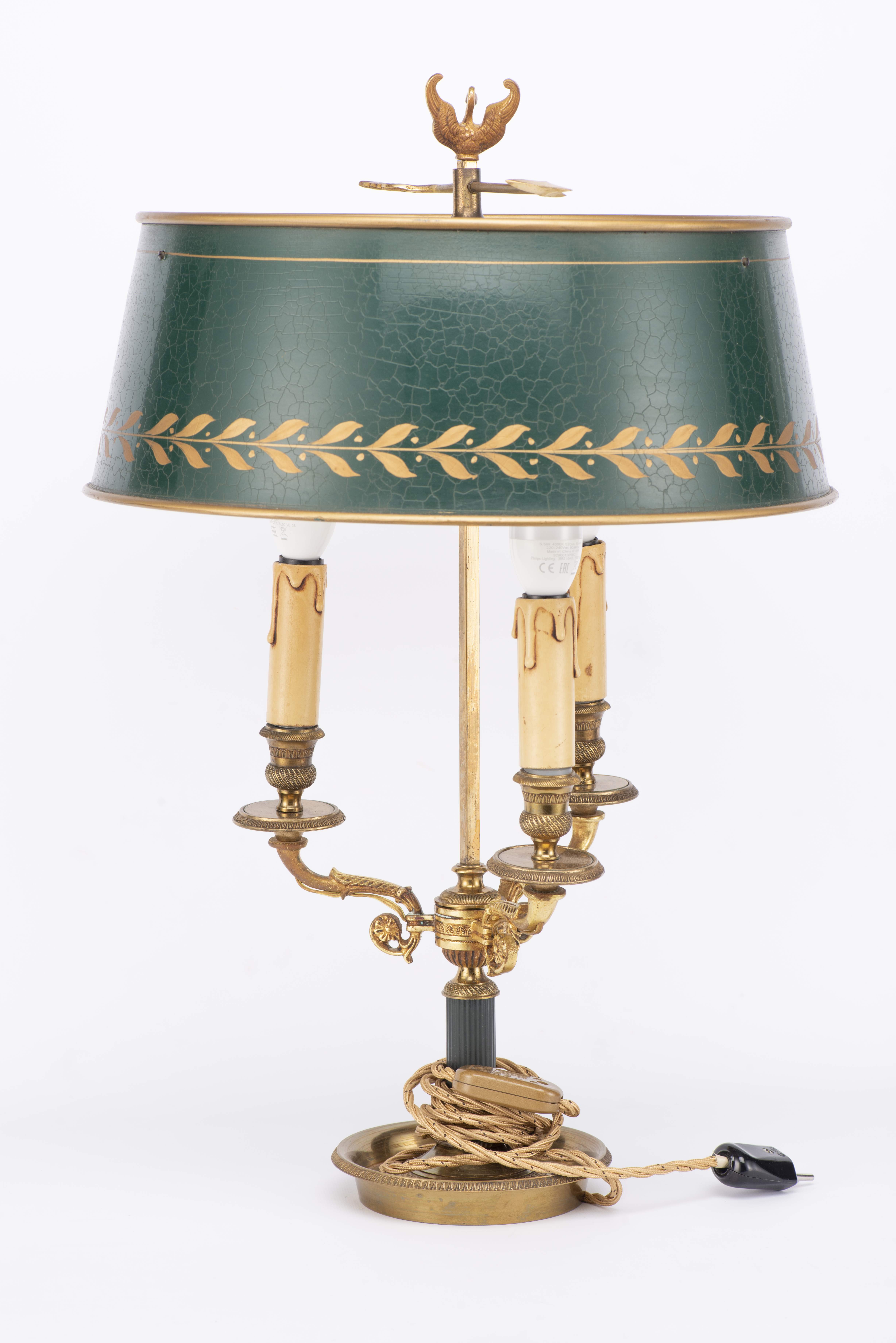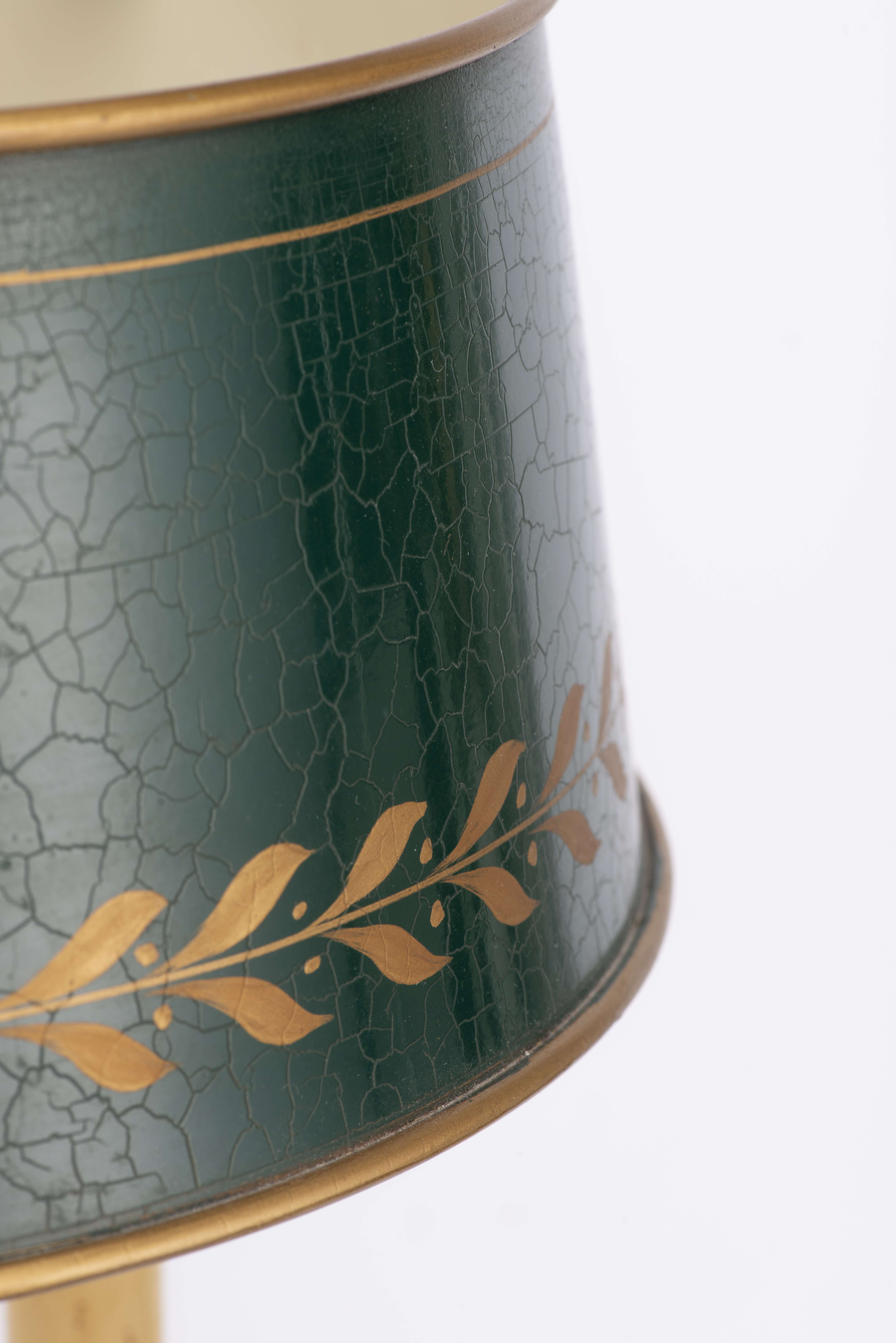 Lampe bouillotte à 3 feux de style Empire en laiton avec abat-jour en tôle peinte.
