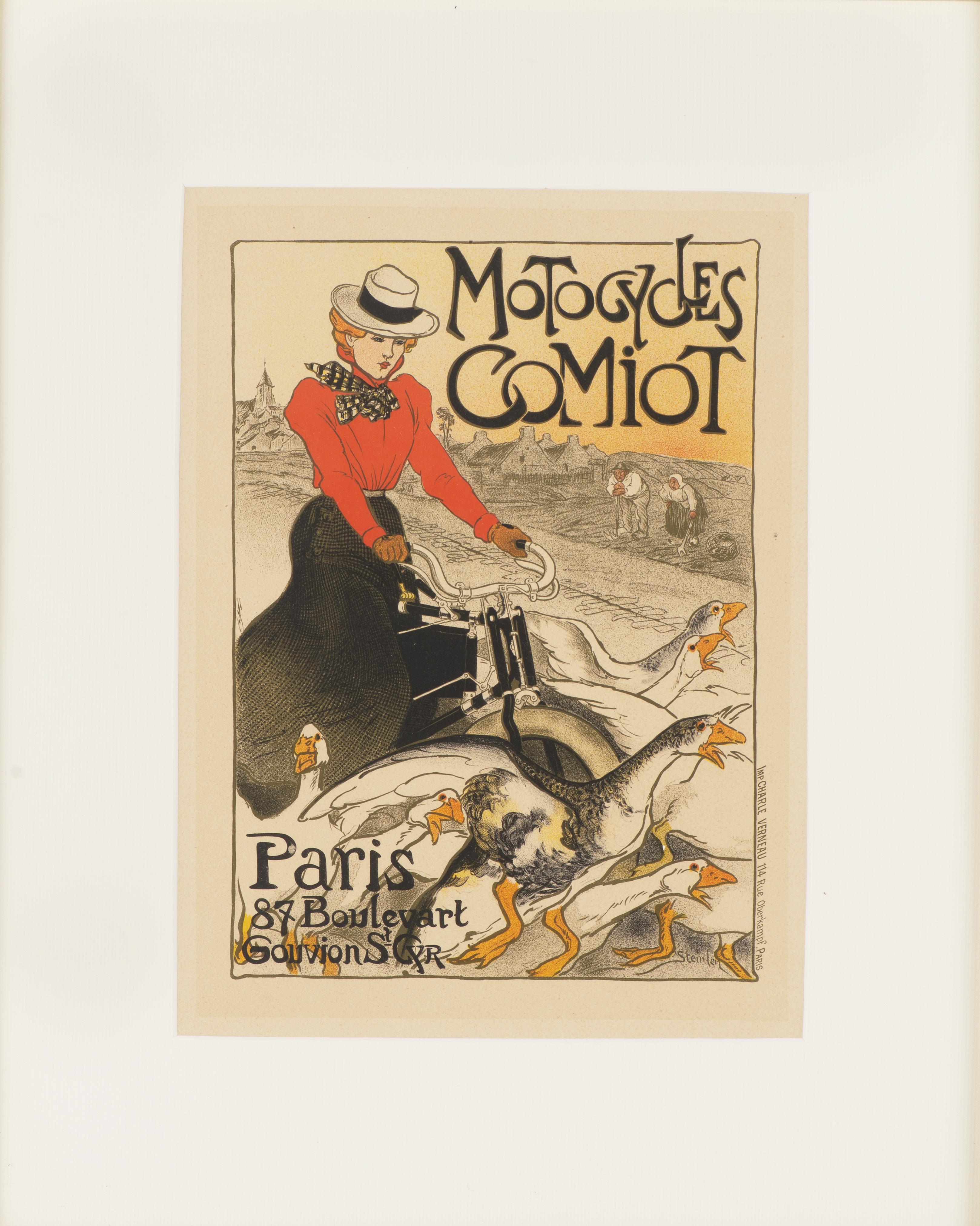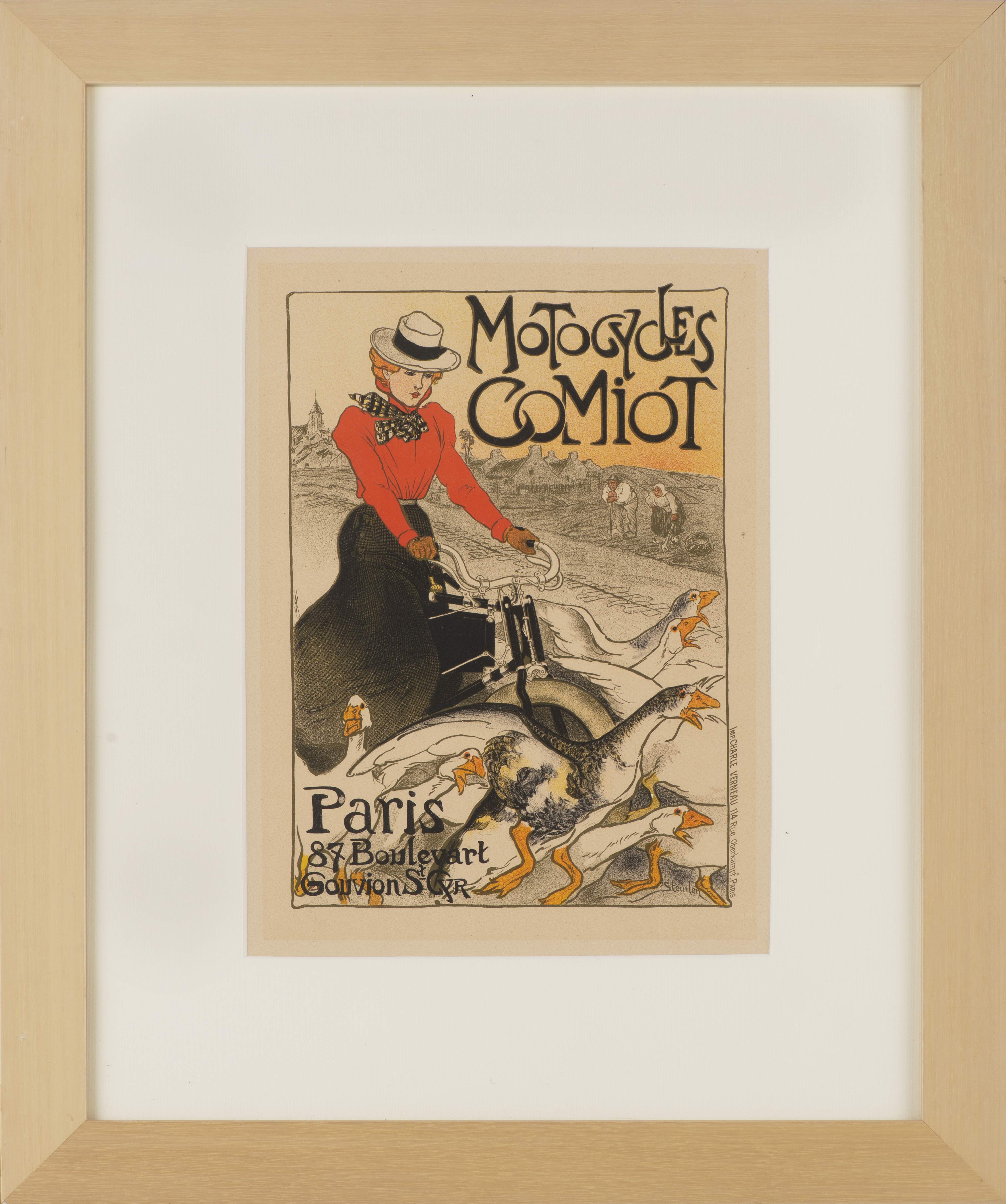 Théophile Alexandre STEINLEN (1859-1923) d'après, "Motocycles Comiot". Lithographie couleurs sbd dans la plaque, éditée par Les Maîtres de l'Affiche, cachet bd.