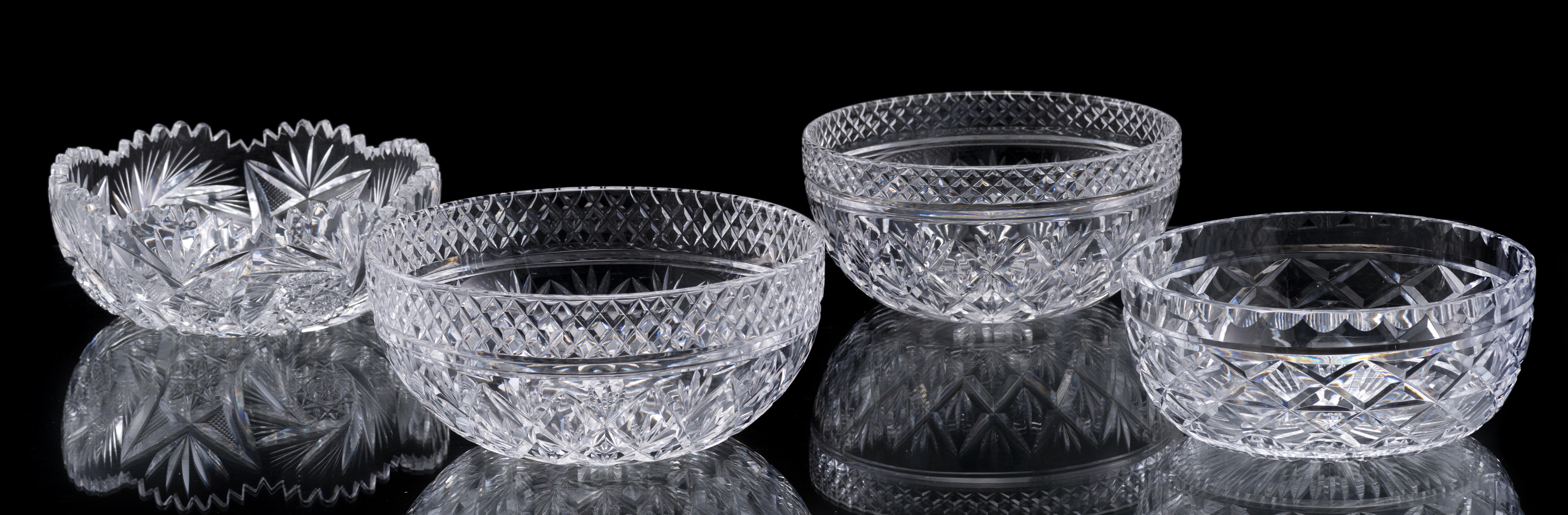 - Thos Webb England 4 bols en cristal taillé transparent.