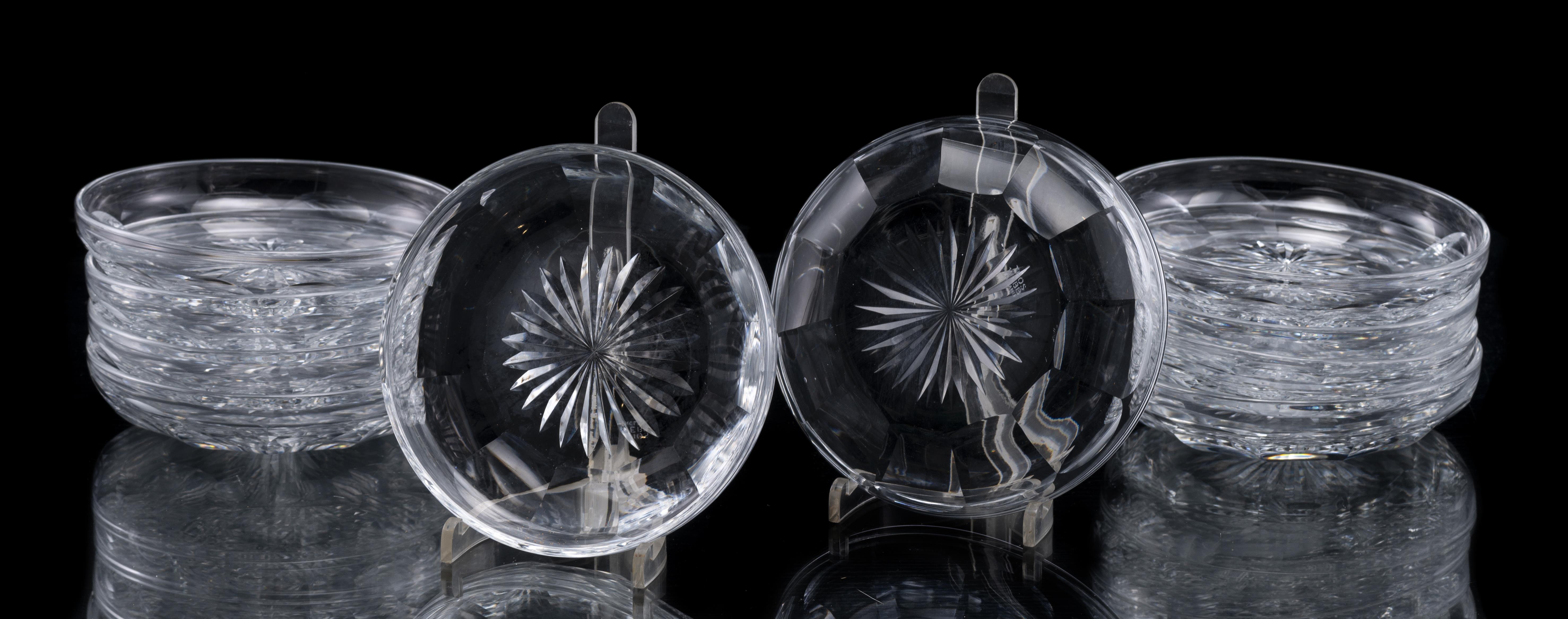 - 10 coupes à fruits en cristal transparent par Thos Webb England. H. 3.5 cm D. 15.5 cm