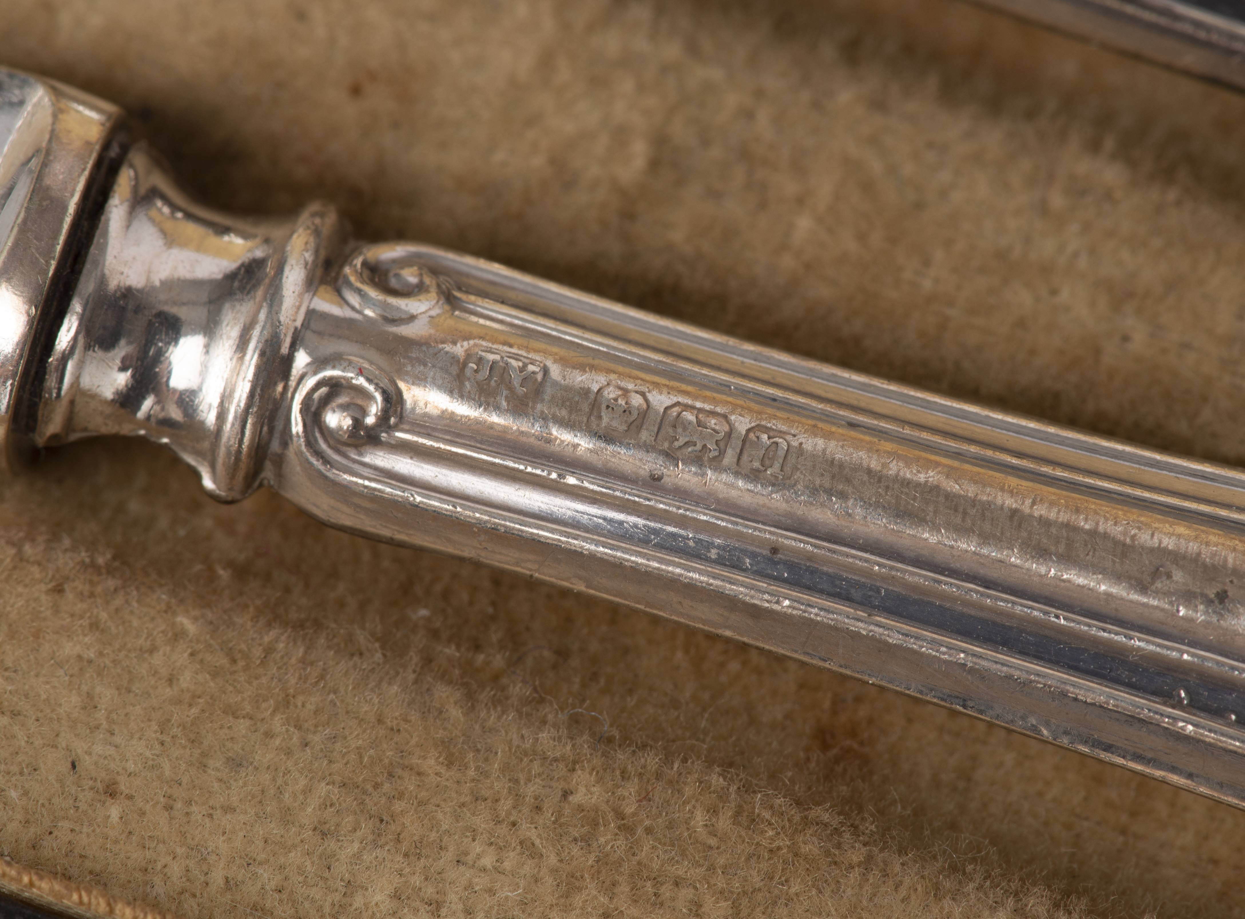 Six couteaux à beurre à manche fourré, en argent .925 sterling de Sheffield de 1905 par JY.