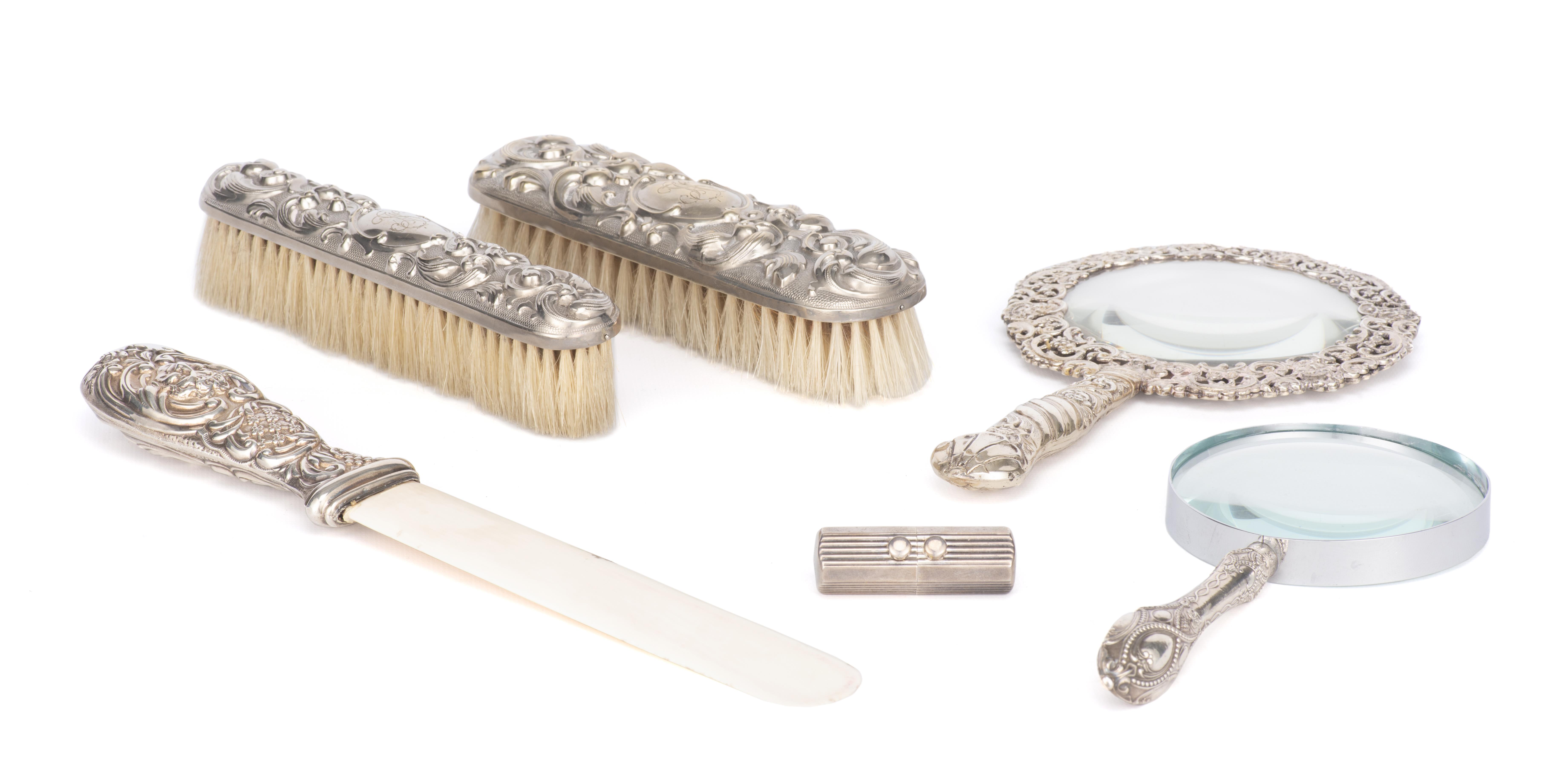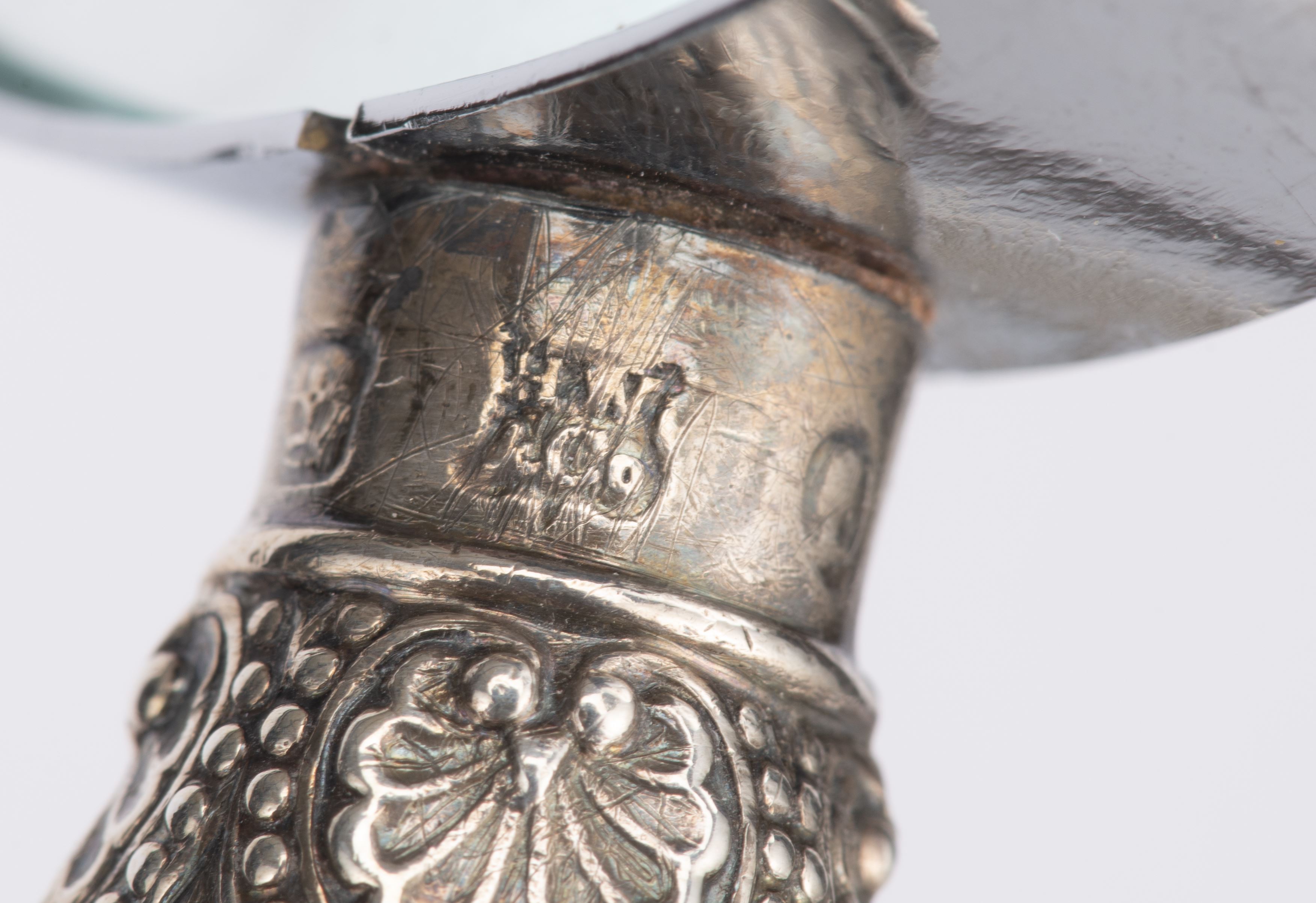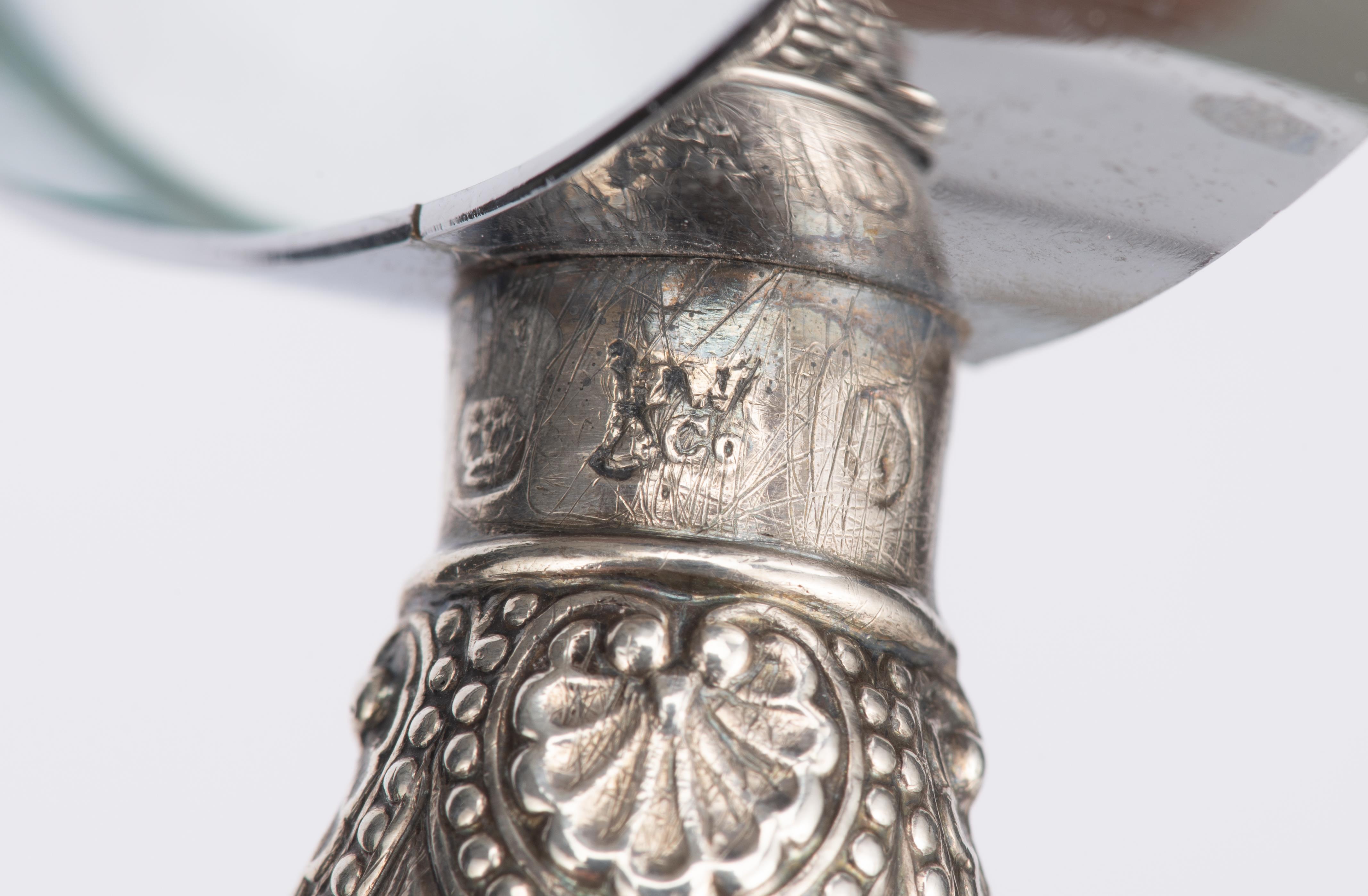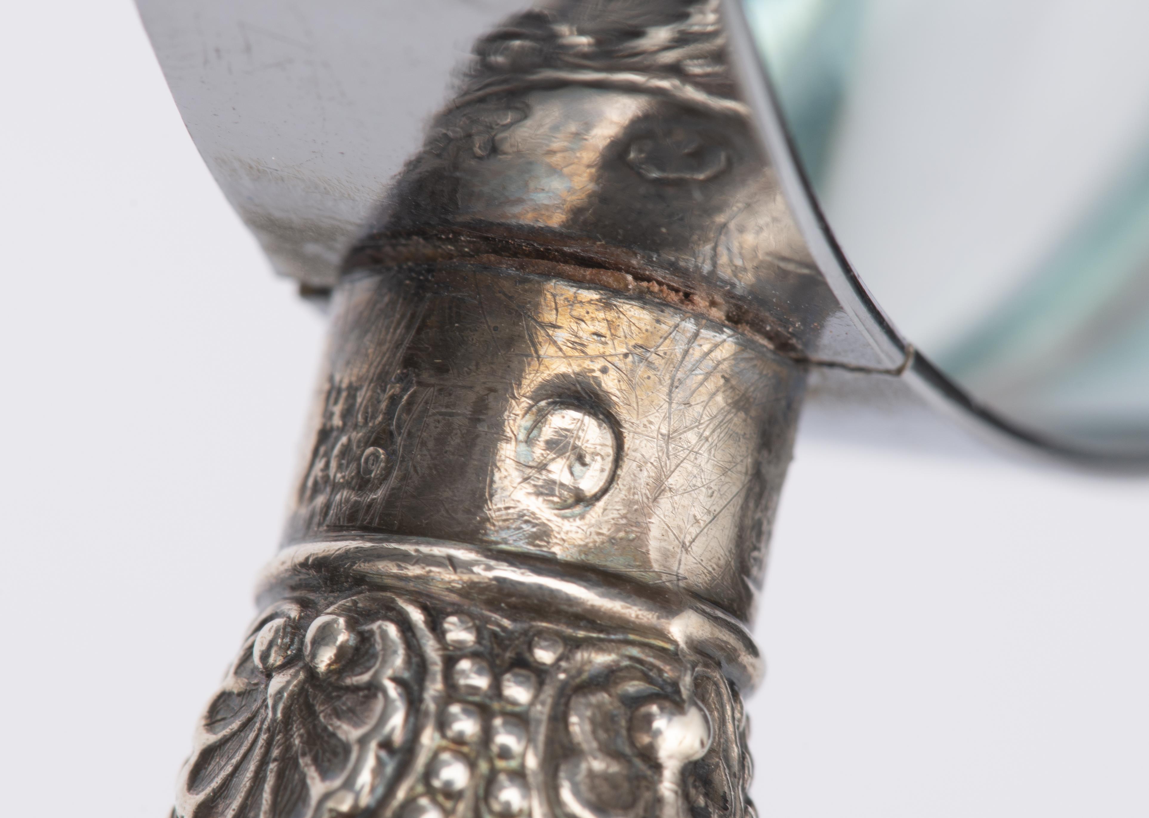 - 1 loupe à manche en argent sterling .925 de Londres par JSJ, 1883. L. 23 cm D. 13.2 cm