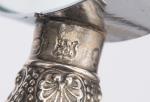 On y joint : 1 ouvre-lettre en ivoire et manche fourré en métal argenté