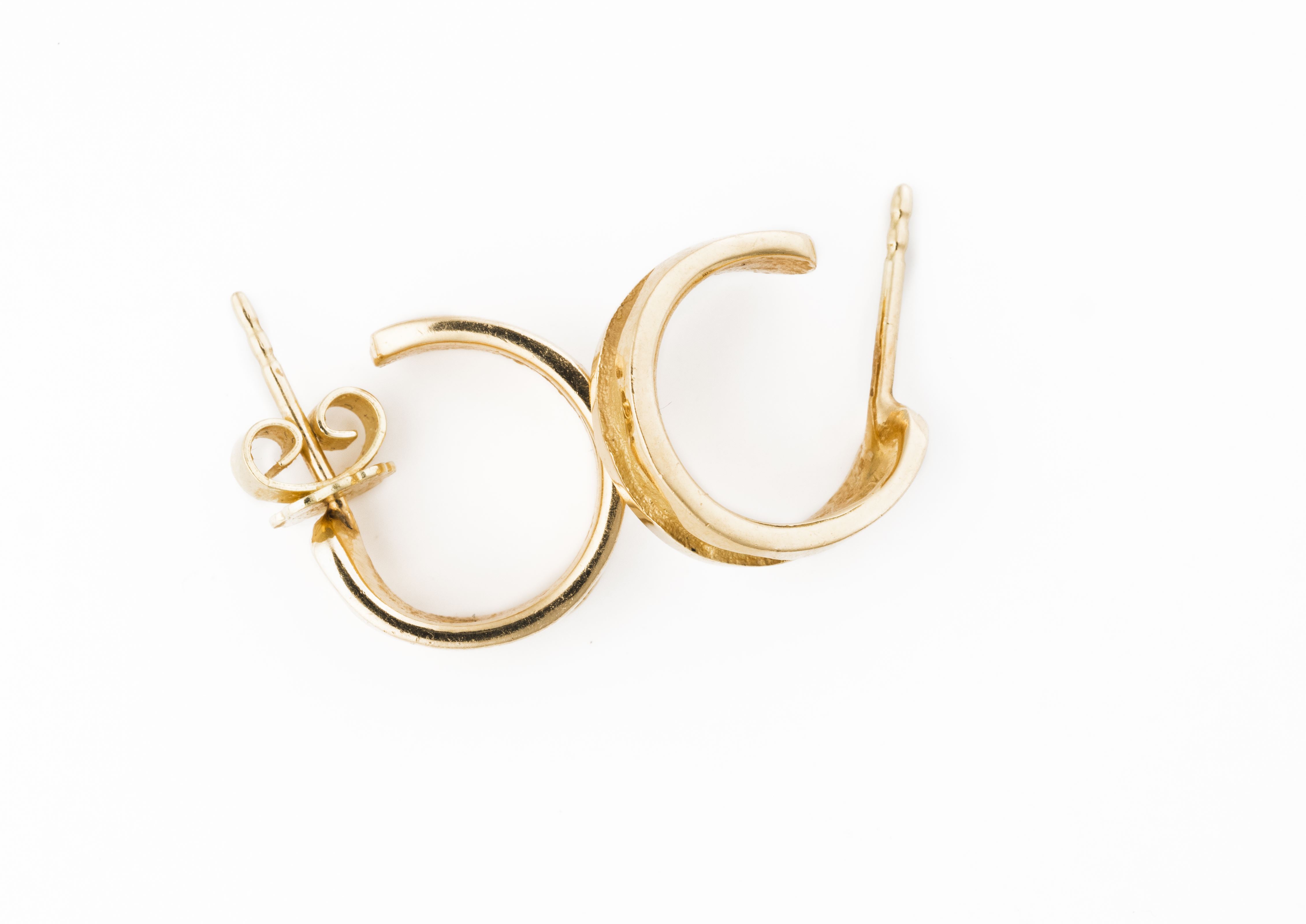 Paire de créoles en or jaune .750 à motif d'un sillon texturé.
