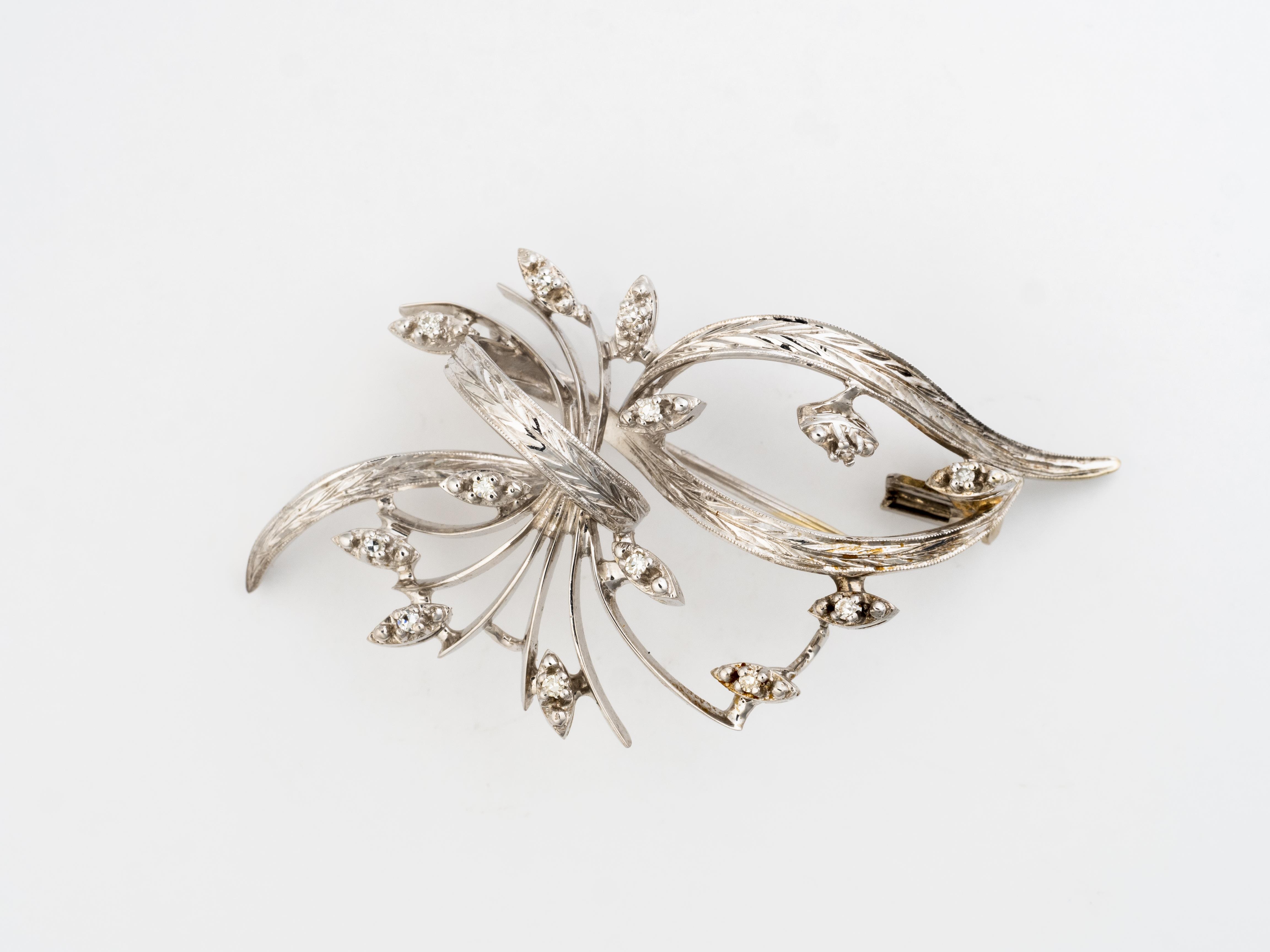 Broche épi en or gris .750 avec 13 diamants de taille 8/8 m pour un total de 0.013 ct., feuille en ruban. Années 60.