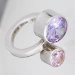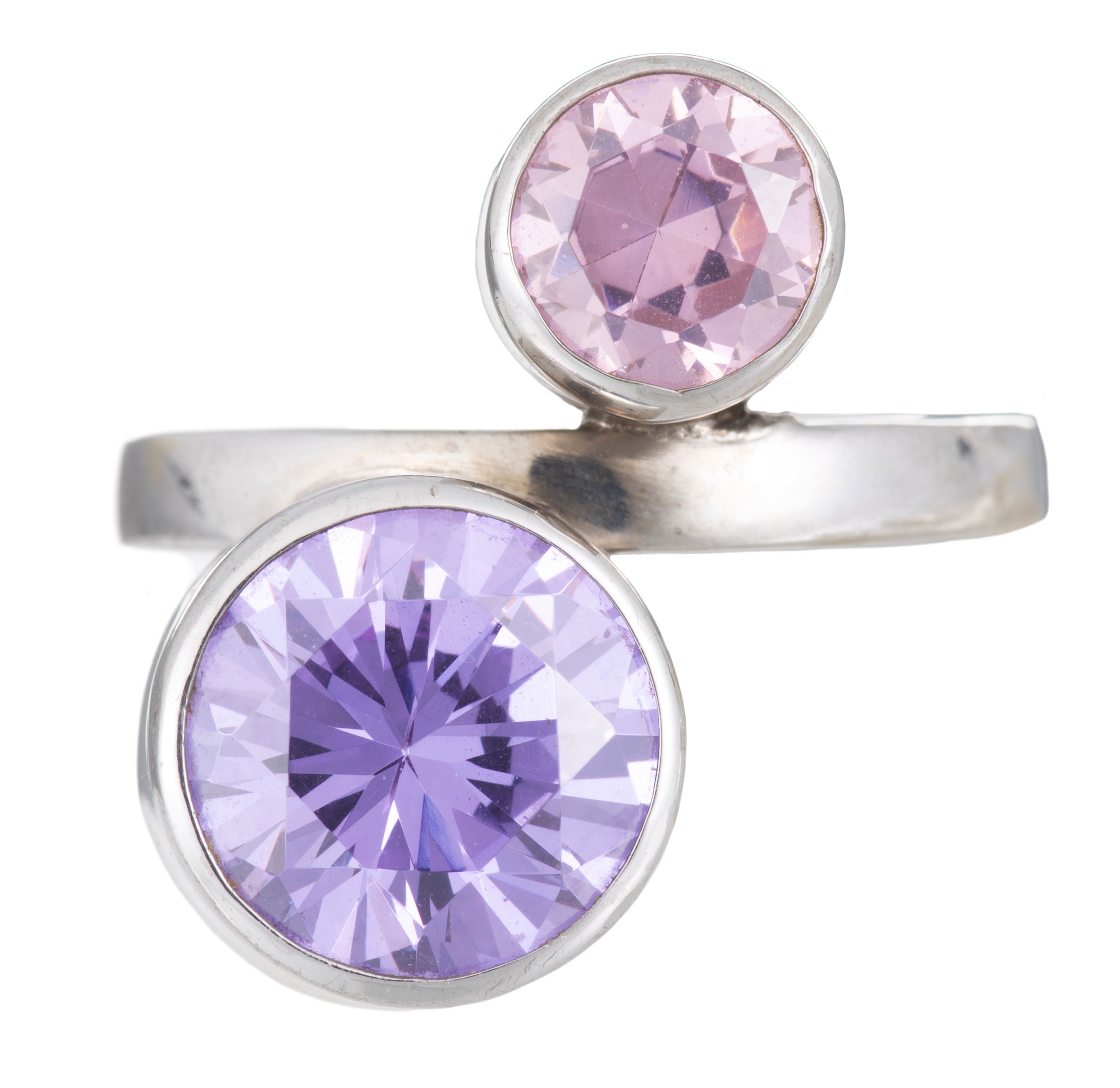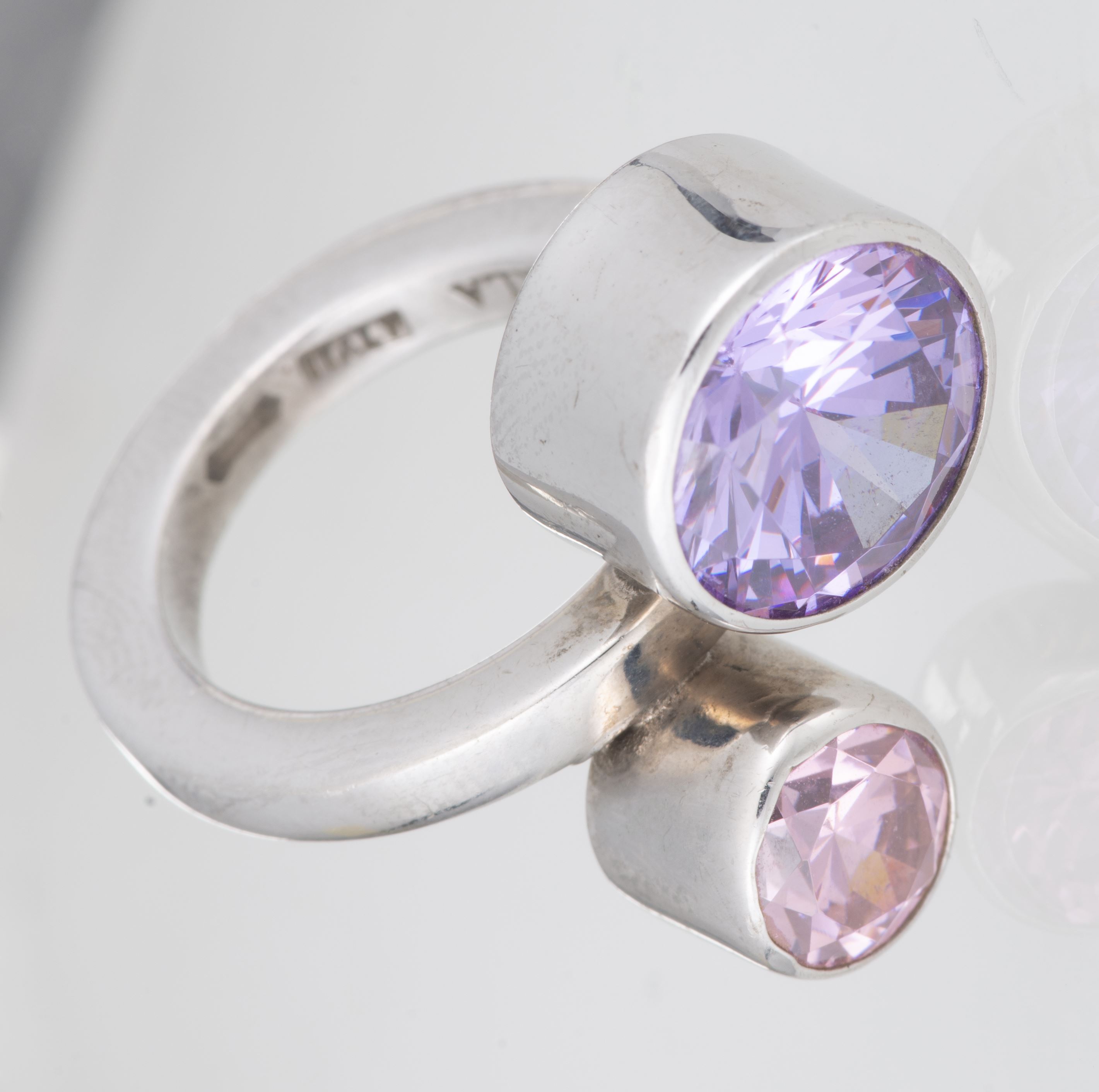 Furla, bague en argent .925 et avec deux pierres, l'une lilla et l'autre, rose.