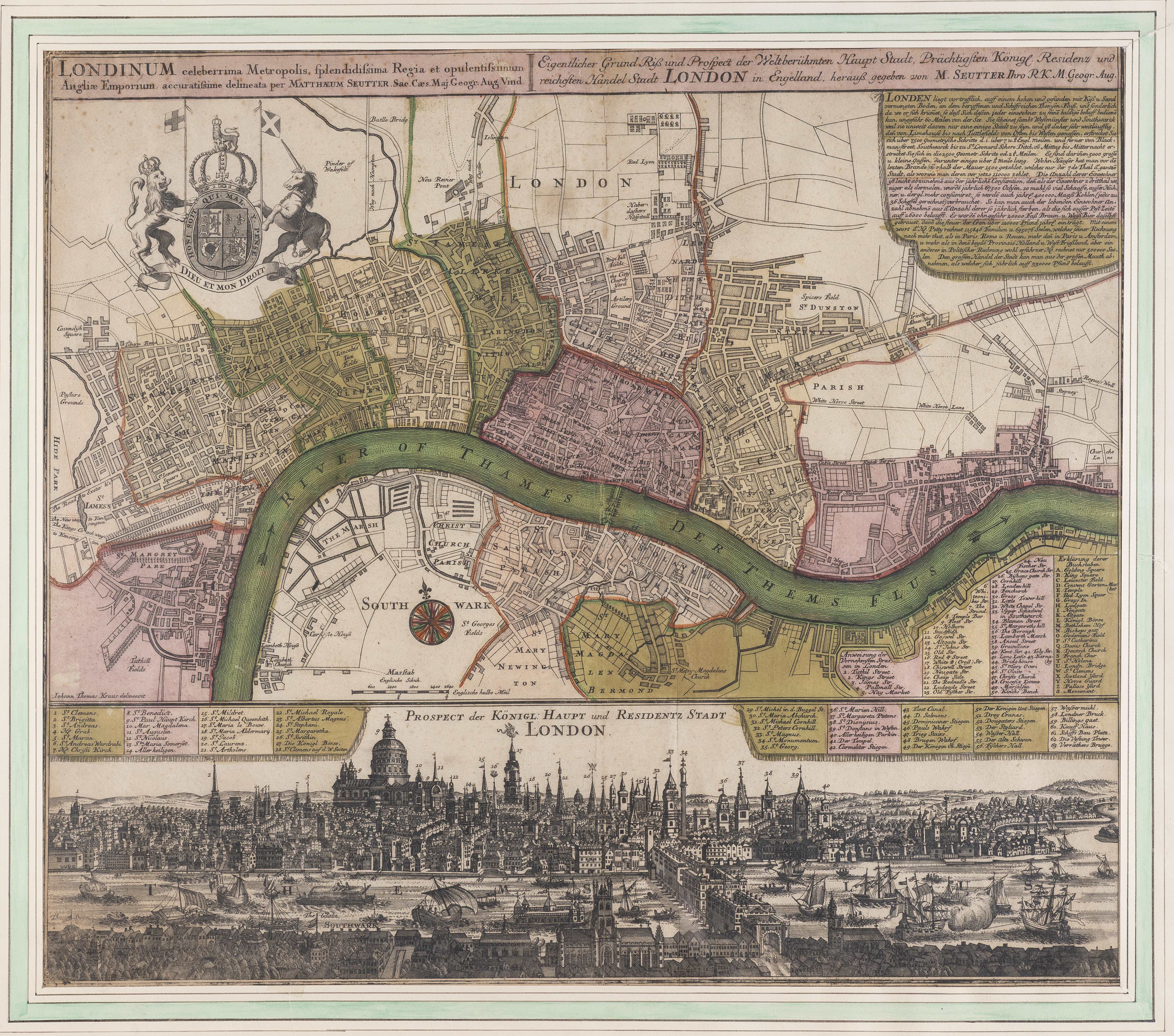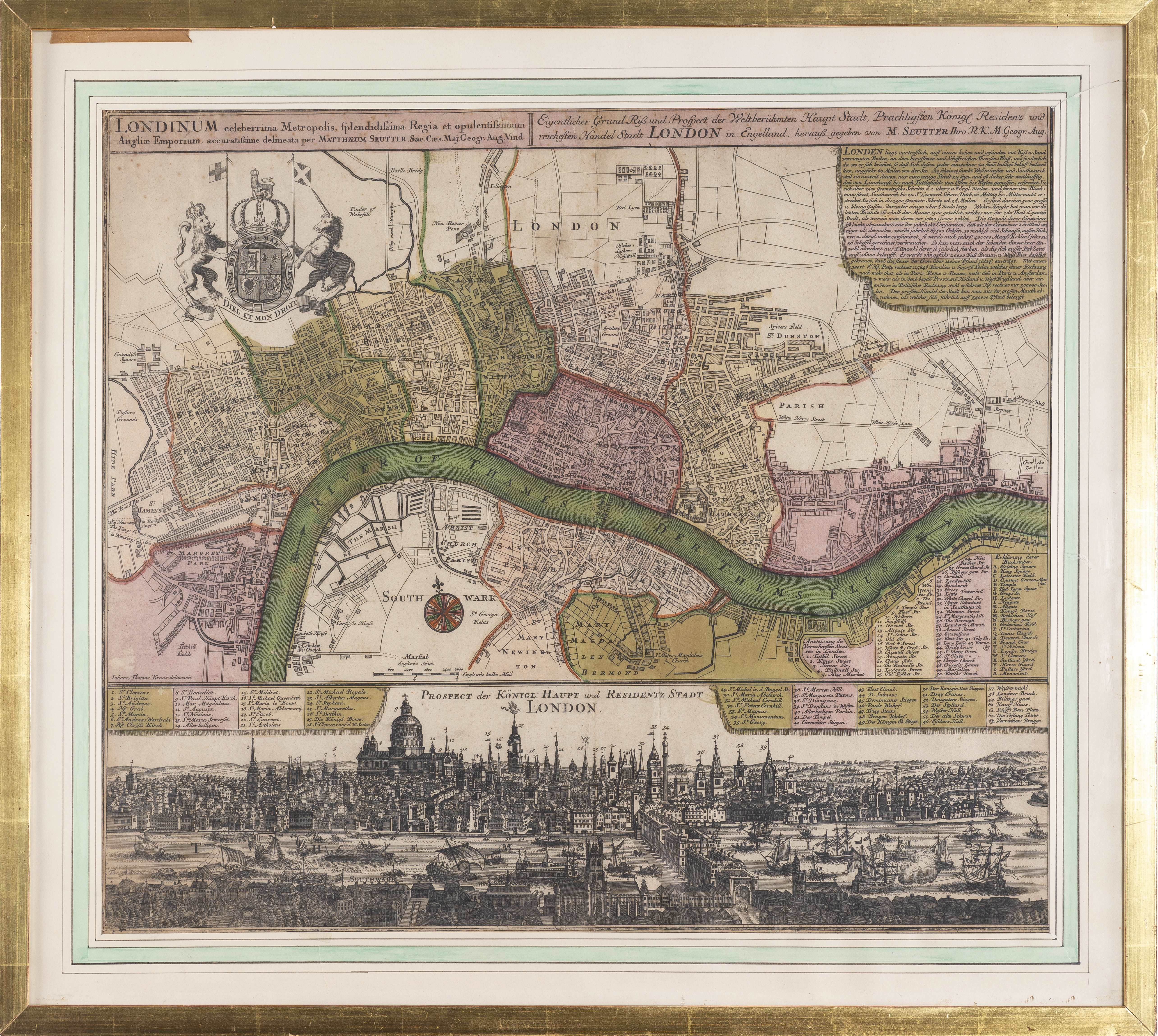 Matthäus SEUTTER (1678-1757), Londinum celeberrima Metropolis, splendissima Regia et opulentissimum Angliae Emporium, accuratissime delineata per Mathaeum Seutter. Augsburg, c. 1740.