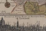 Gravure colorée de Londres, ornée des armes royales de Hanovre et d'une perspective de la ville située en dessous.