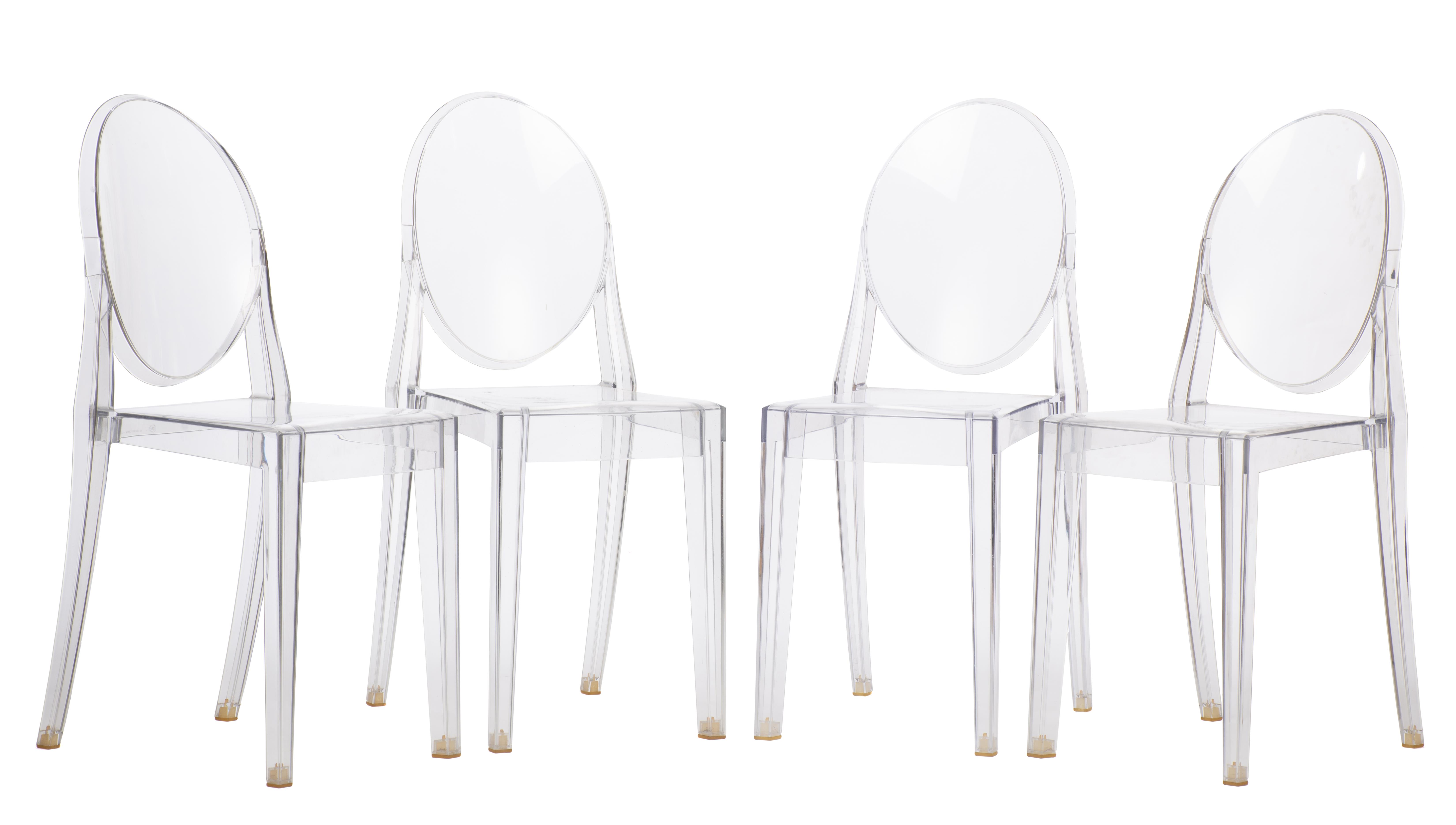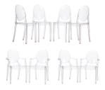 Philippe Starck, Kartell - quatre chaises Victoria Ghost et quatre fauteuils Louis Ghost