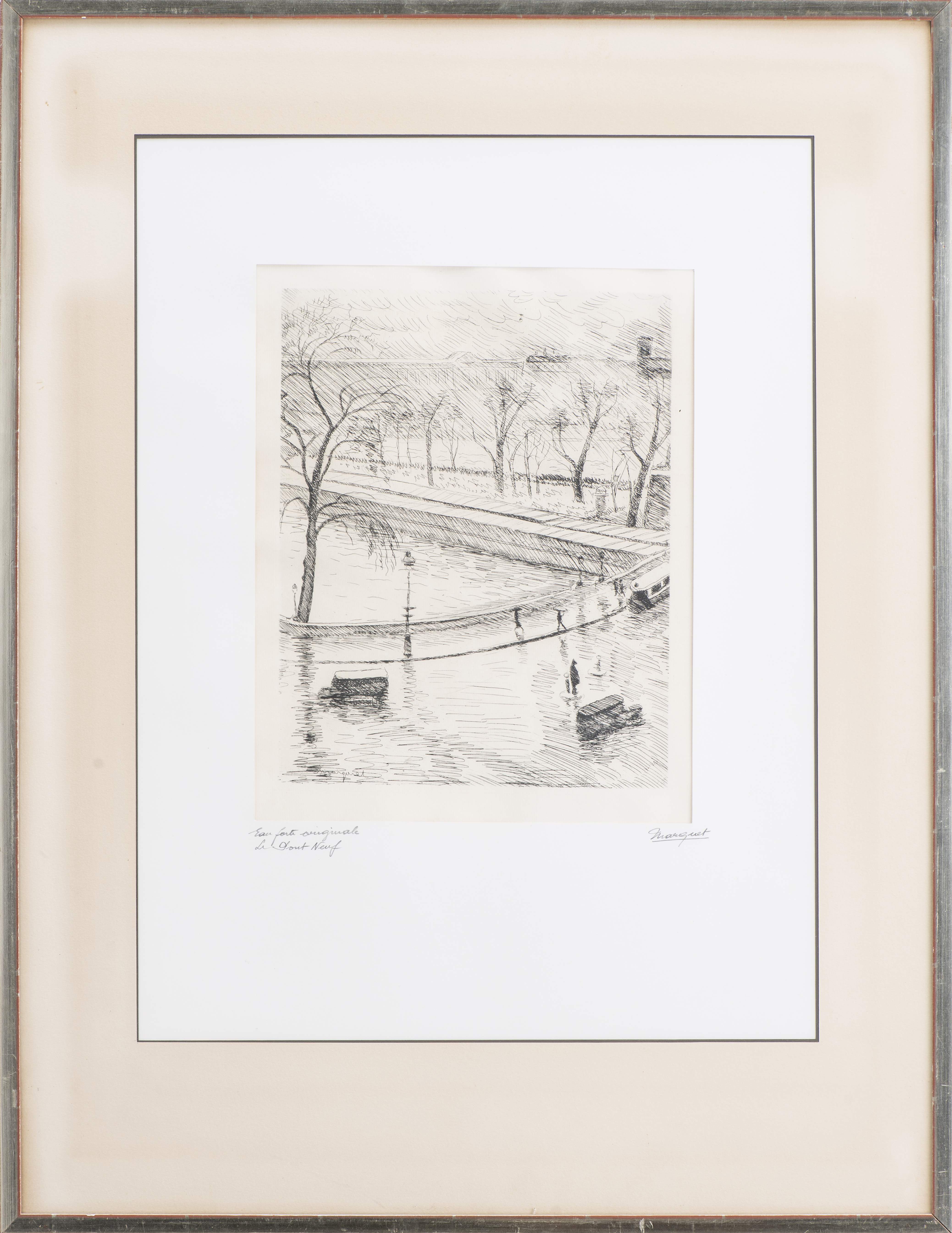 Albert MARQUET ( 1875-1947) "Le Pont Neuf" (1938), eau-forte à la pointe sèche signé dans la planche en bg "Marquet".