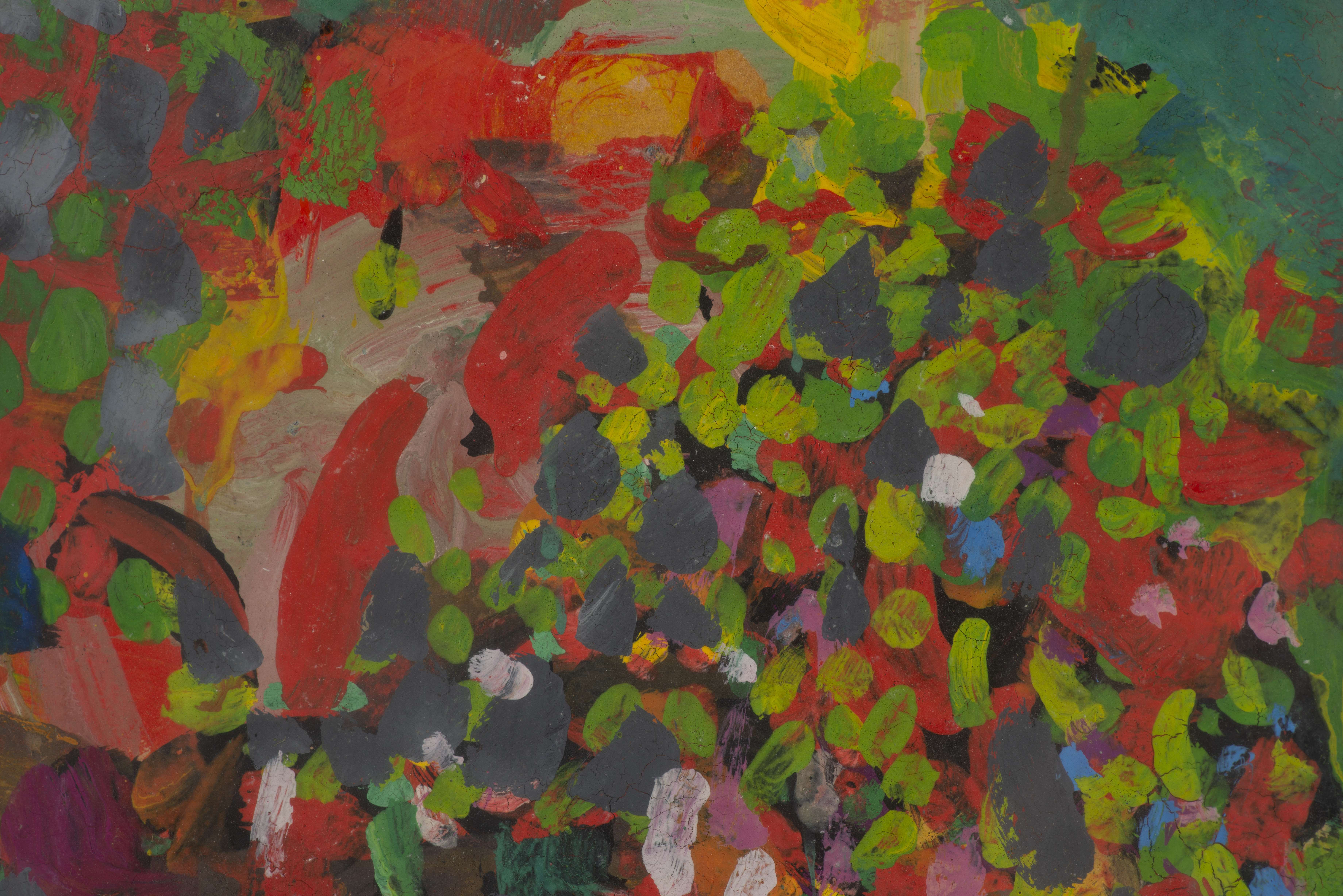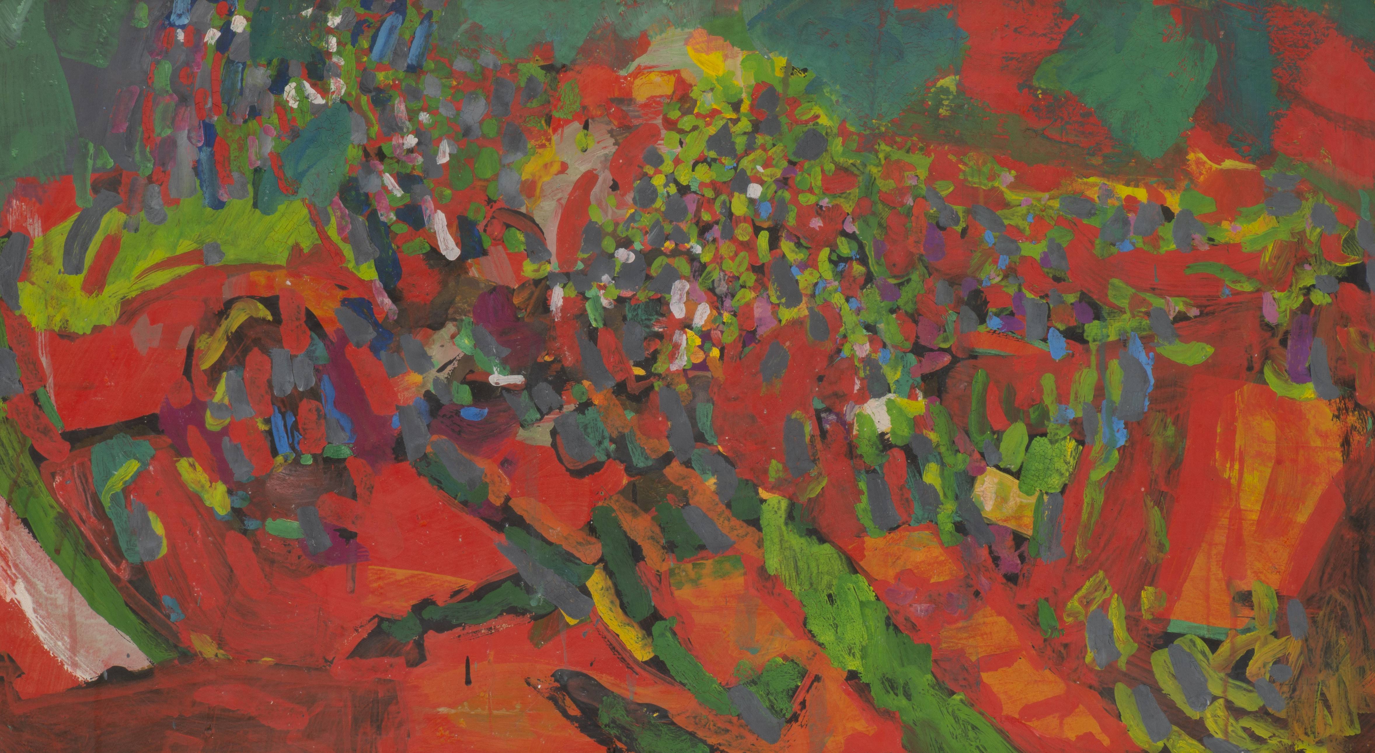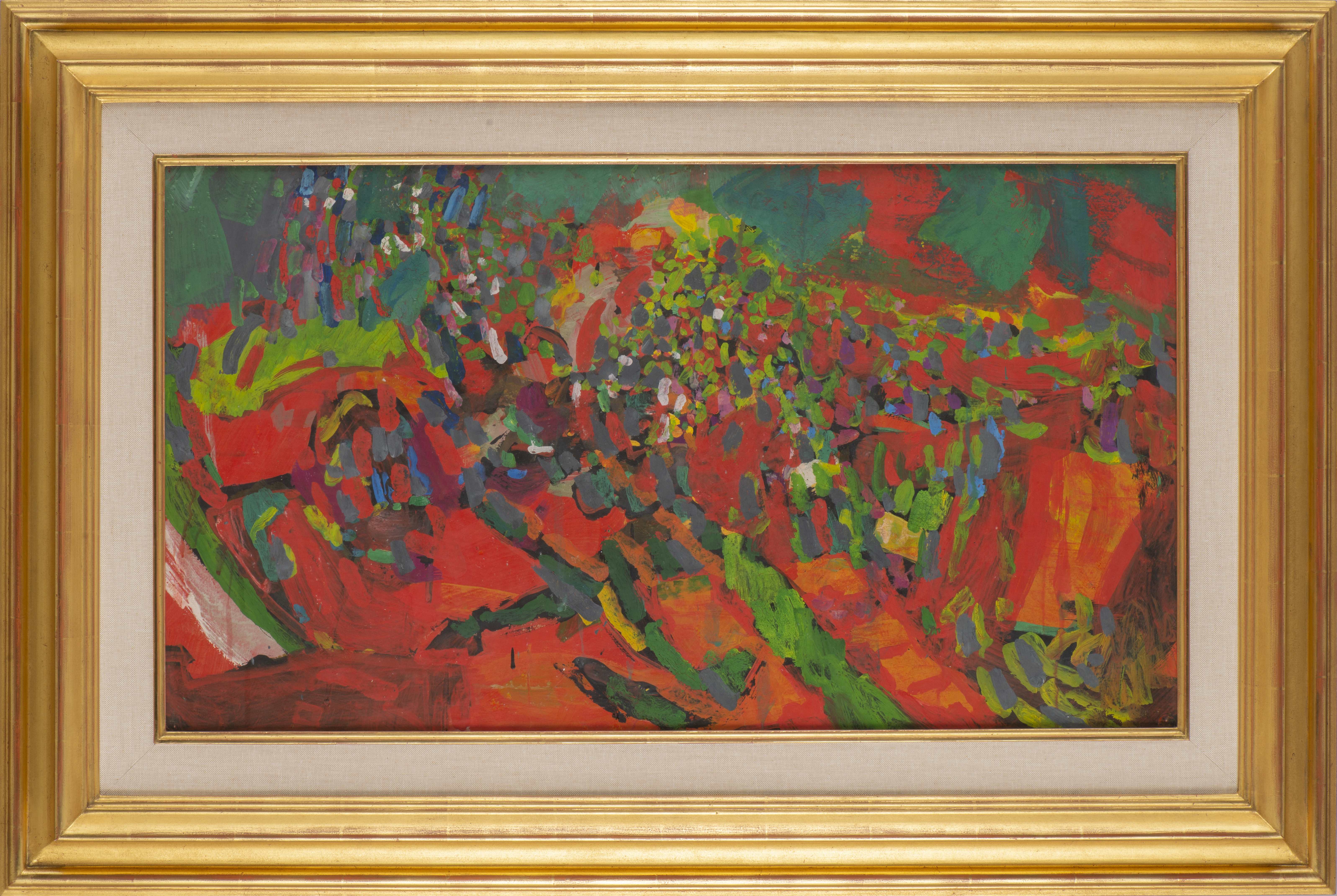 Jean-Claude PRÈTRE (né en 1942) "Le champ rouge" gouache sur papier avec trace de signature au milieu en bas.