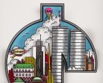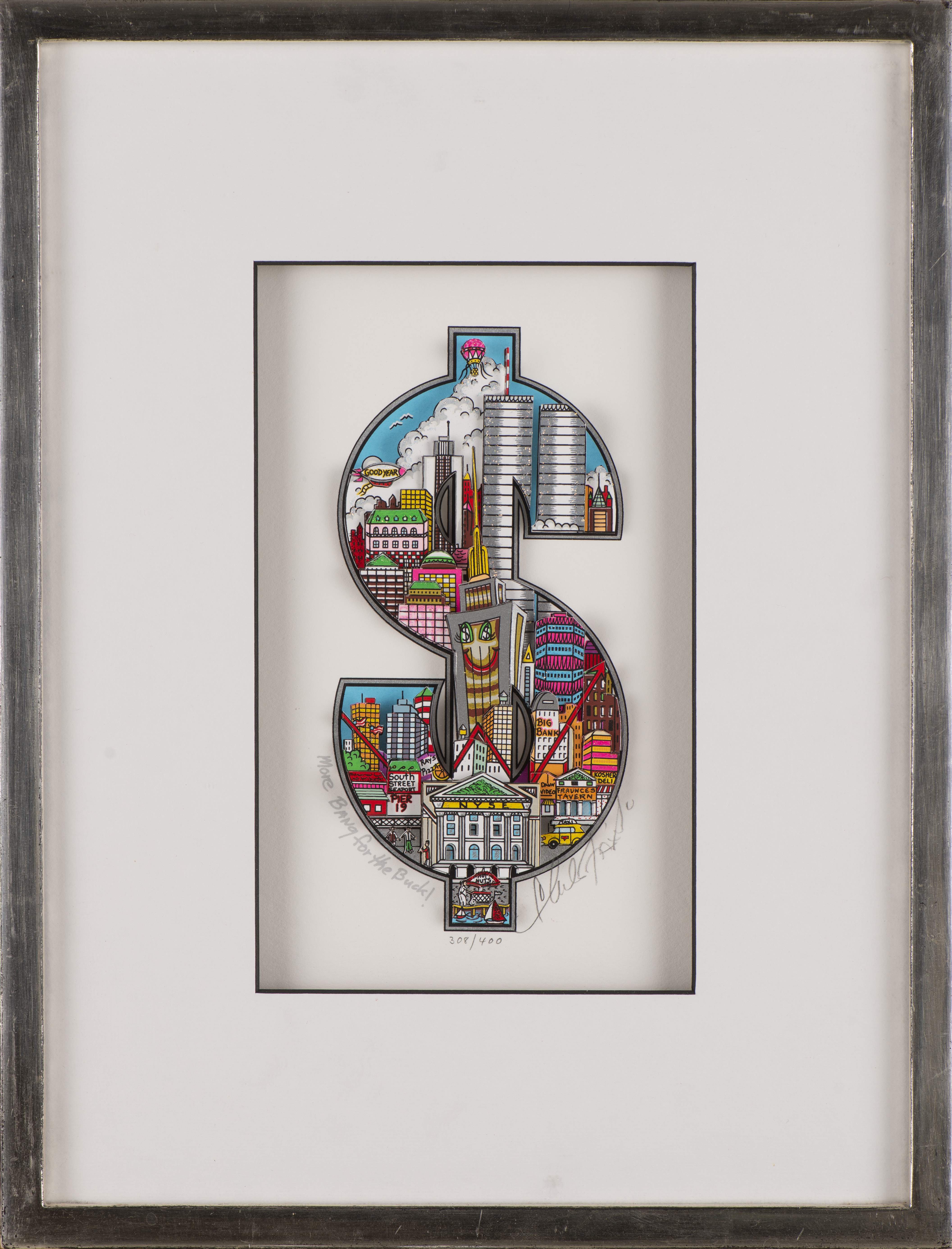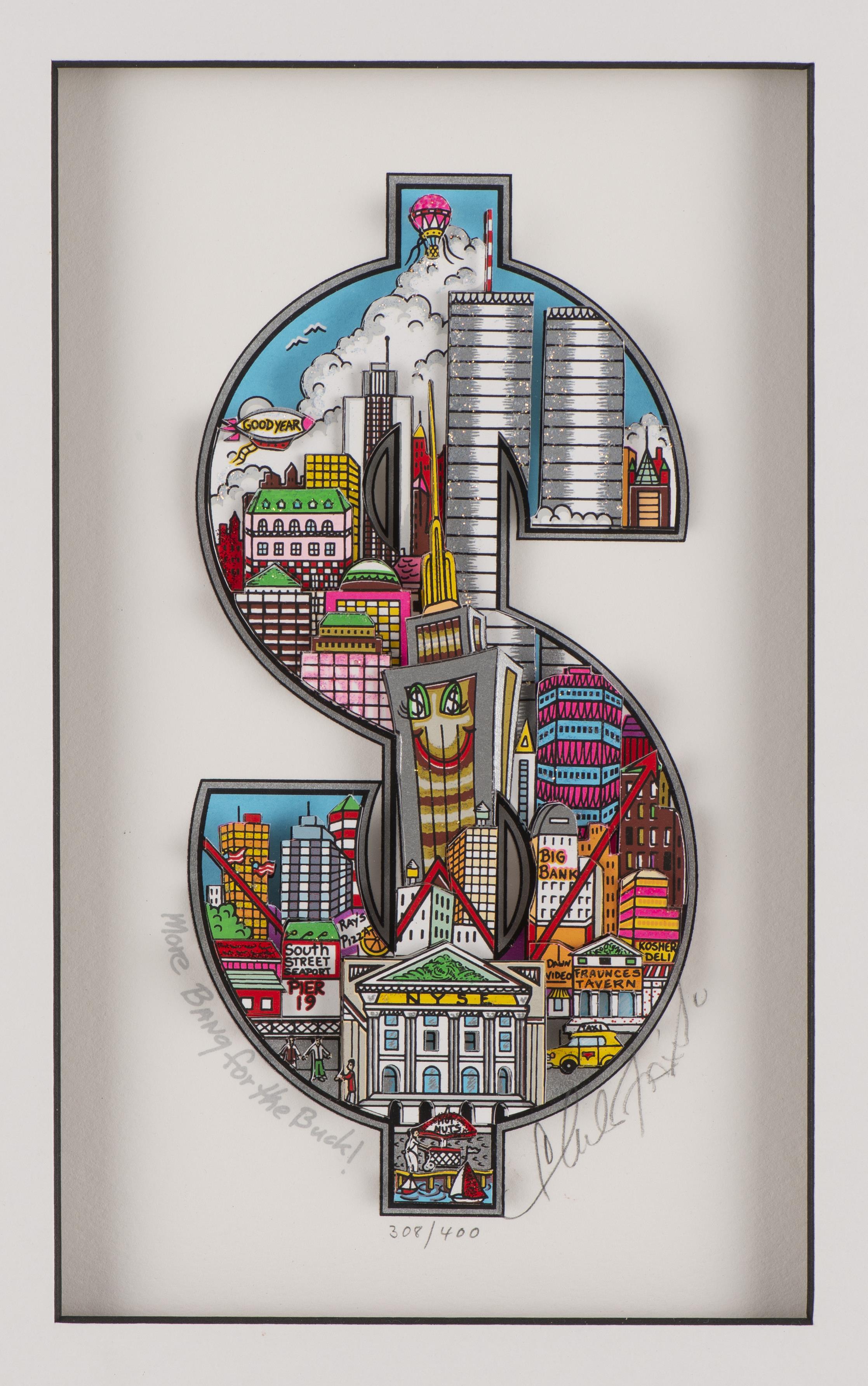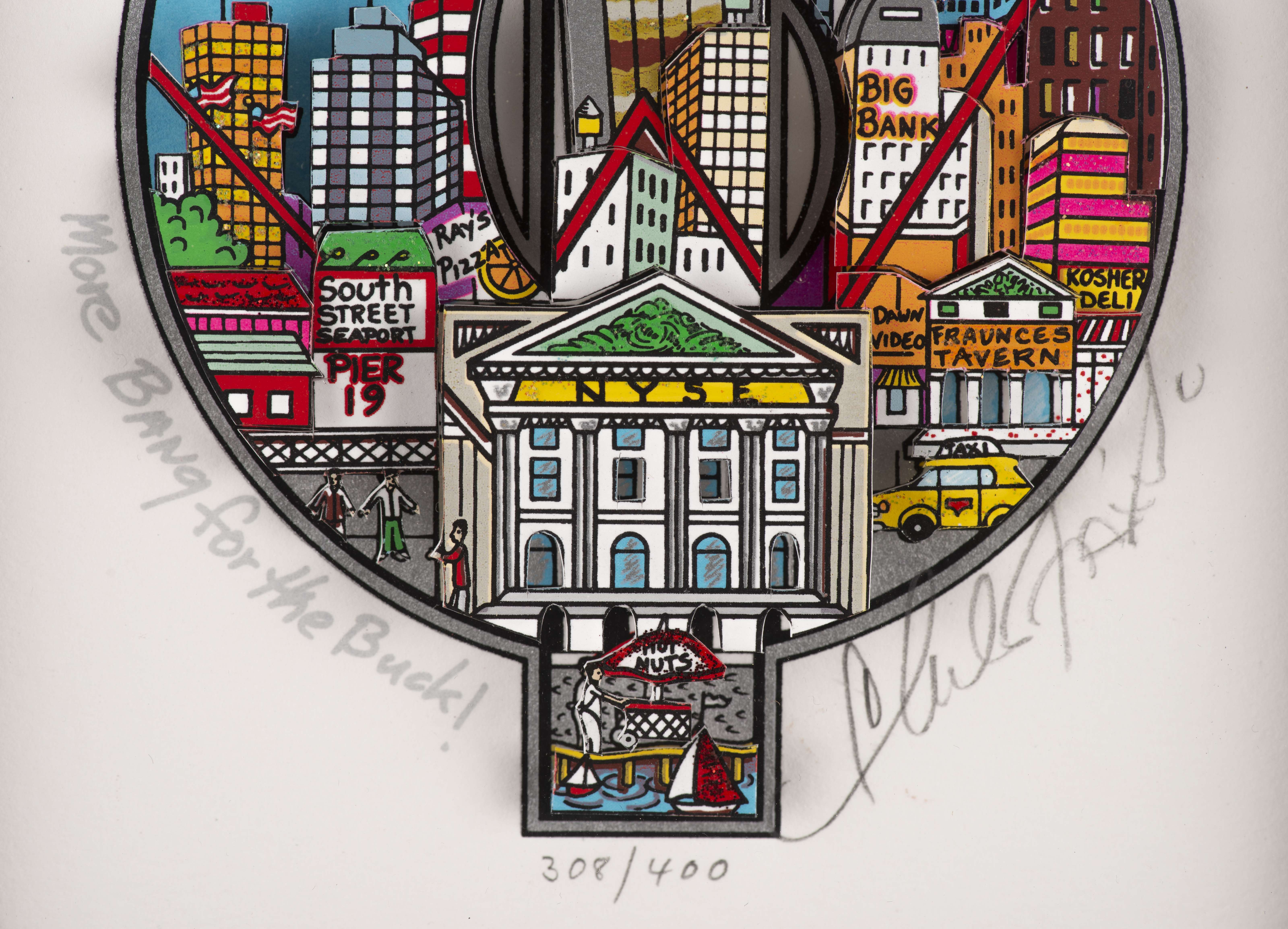 Charles FAZZINO (1955), "More bang for the buck", echnique mixte en 3D, 308/400 sbd au crayon.