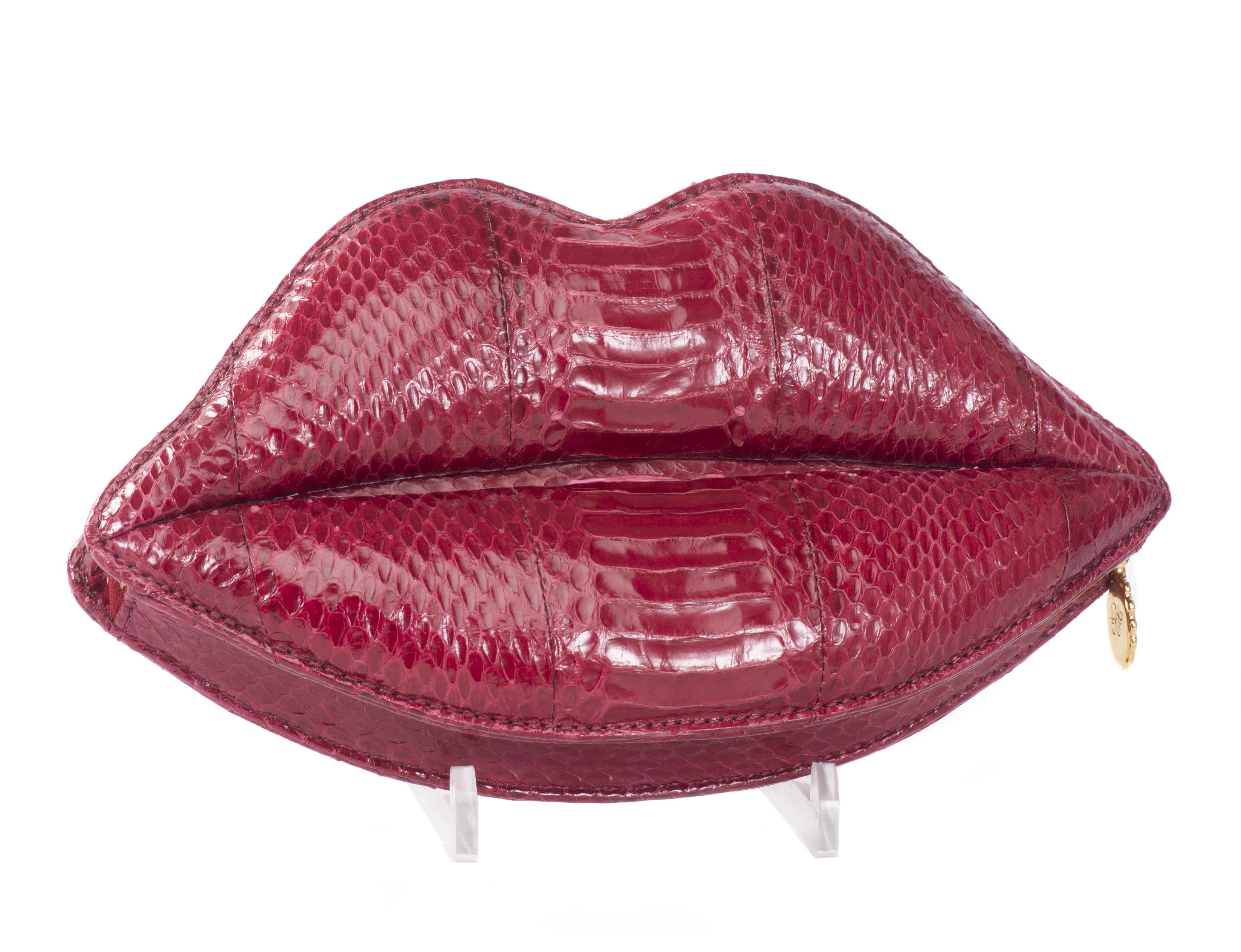 - une pochette lèvres imitation serpent rouge Lulu Guinness