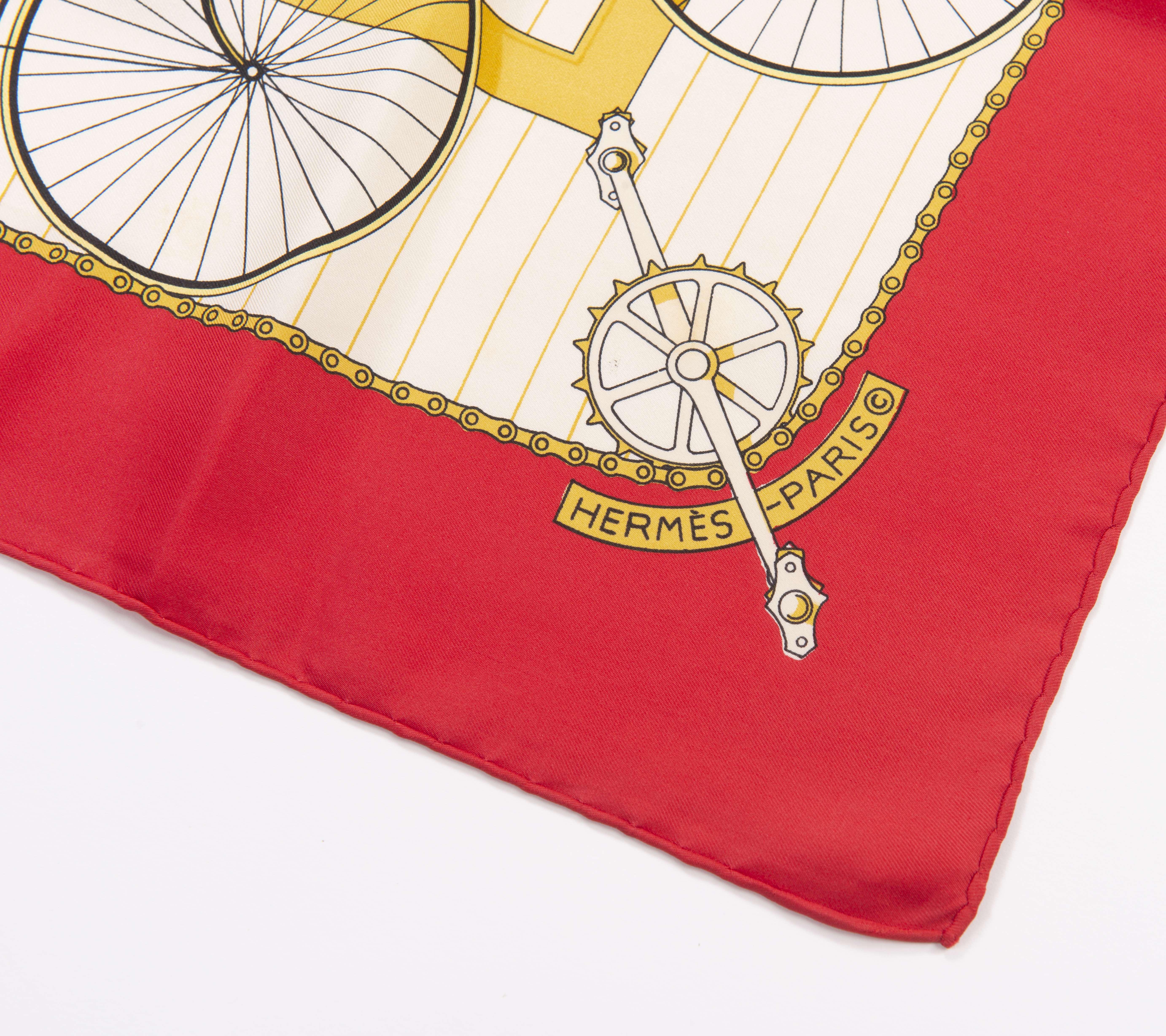 Hermès Paris, carré en soie "Les bécanes" par Hugo Grygkar, première édition datant de 1954.