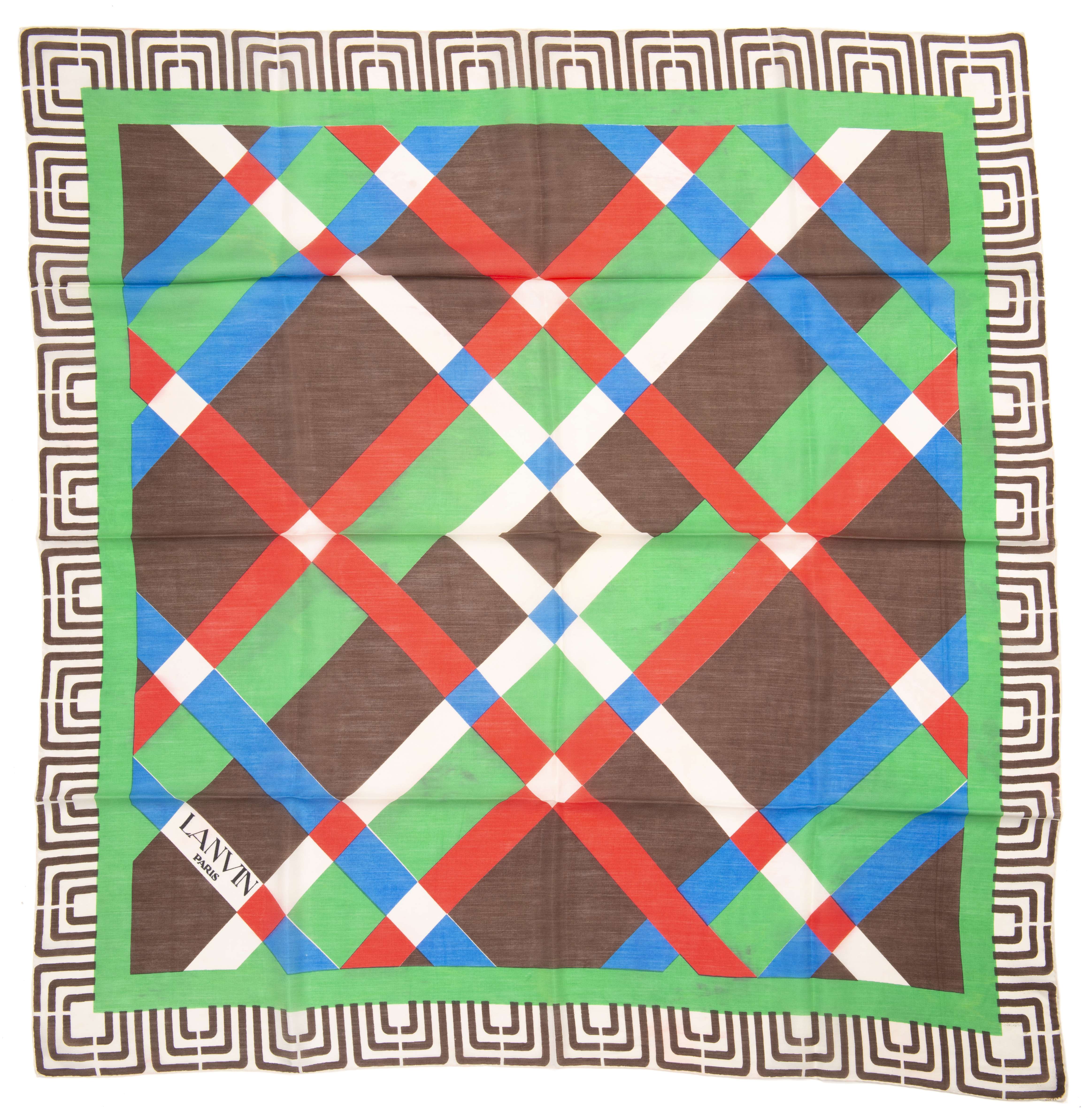 - Lanvin Paris, motifs géométriques colorés sur fond vert.