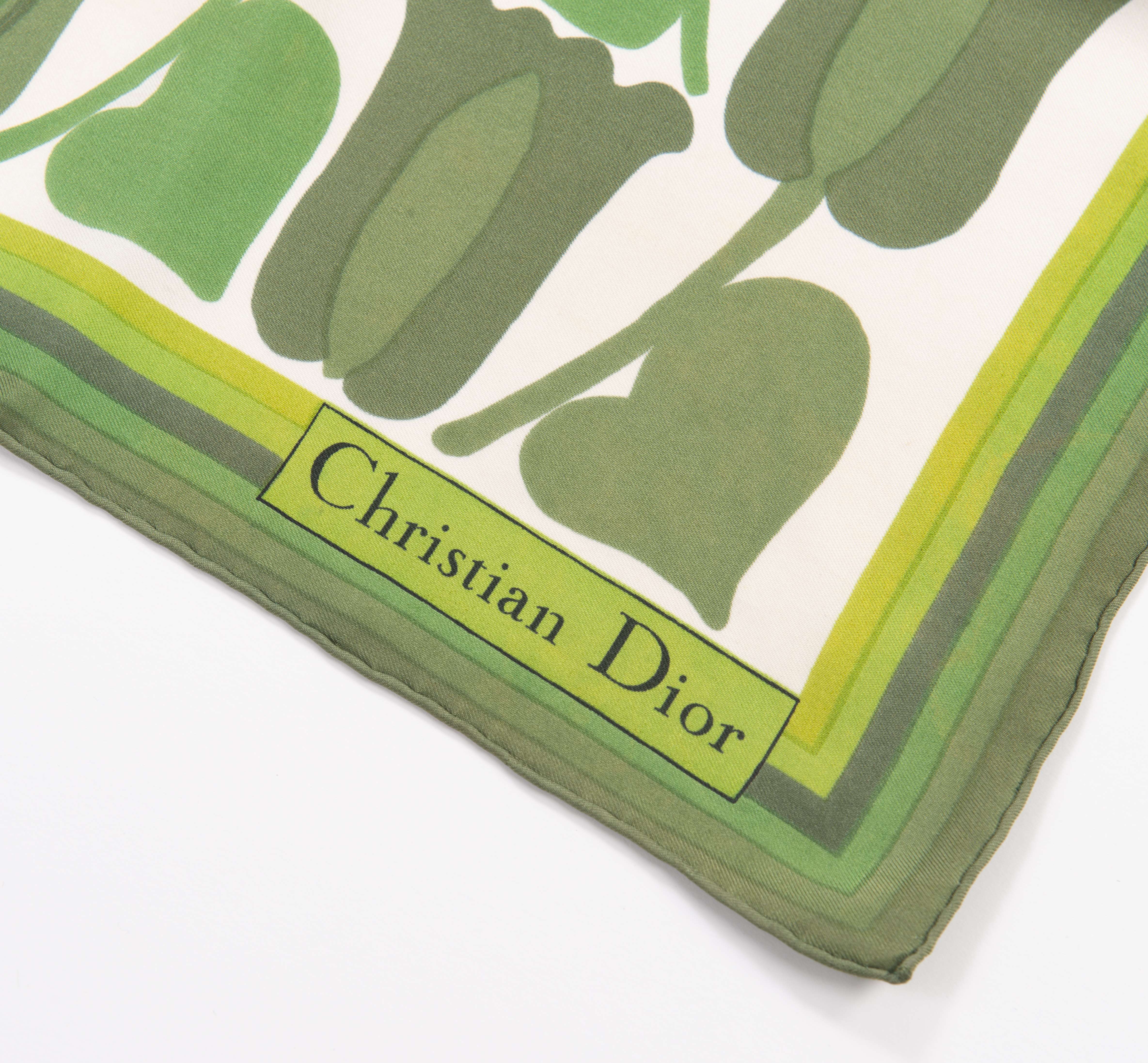 - Christian Dior, motifs végétaux sur fond beige et vert.