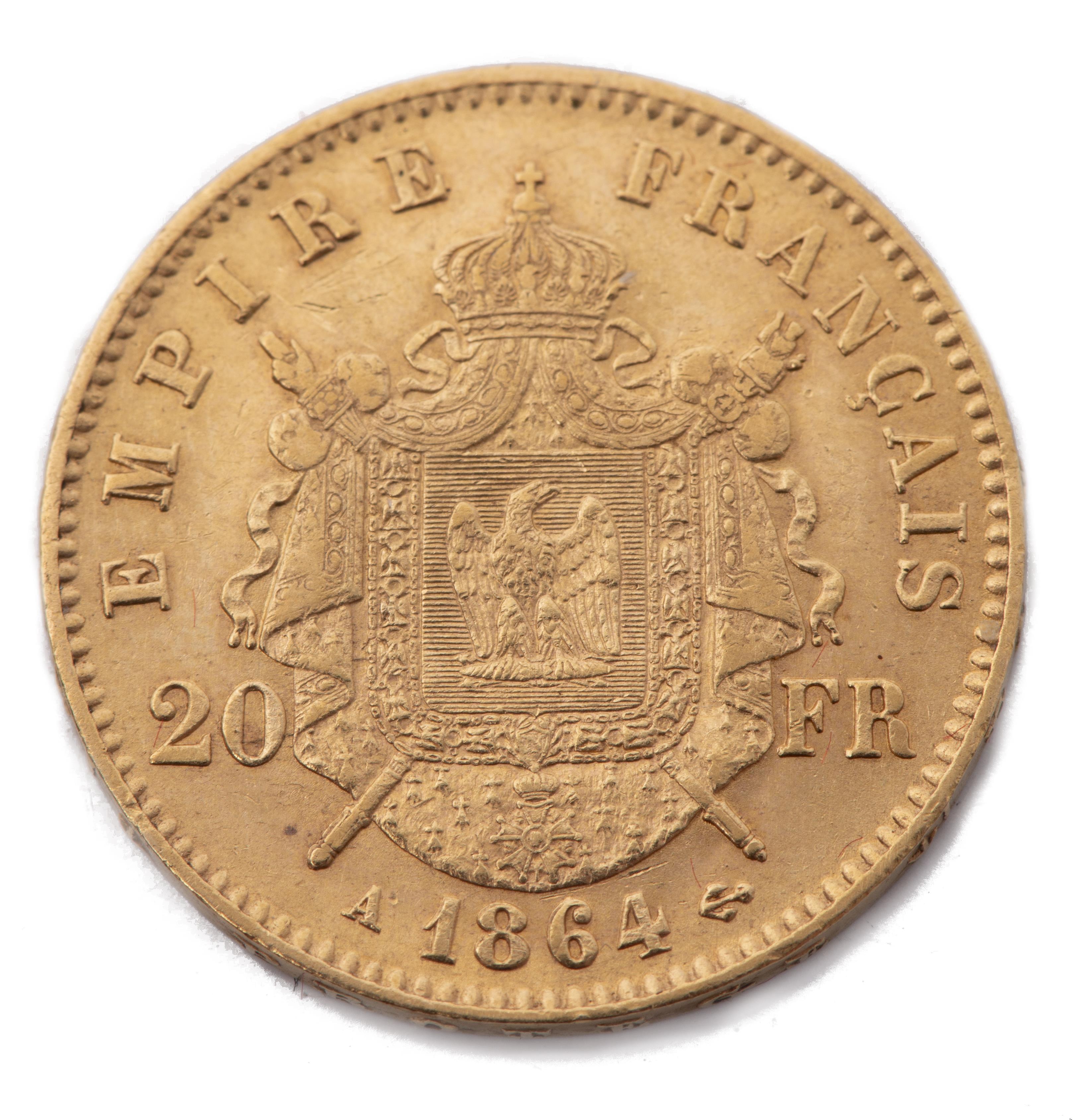 20 Francs Or Napoléon III (1808-1873), tête laurée 1864 A, gravé par Albert désiré Barré, or 0.900 (à verifier)