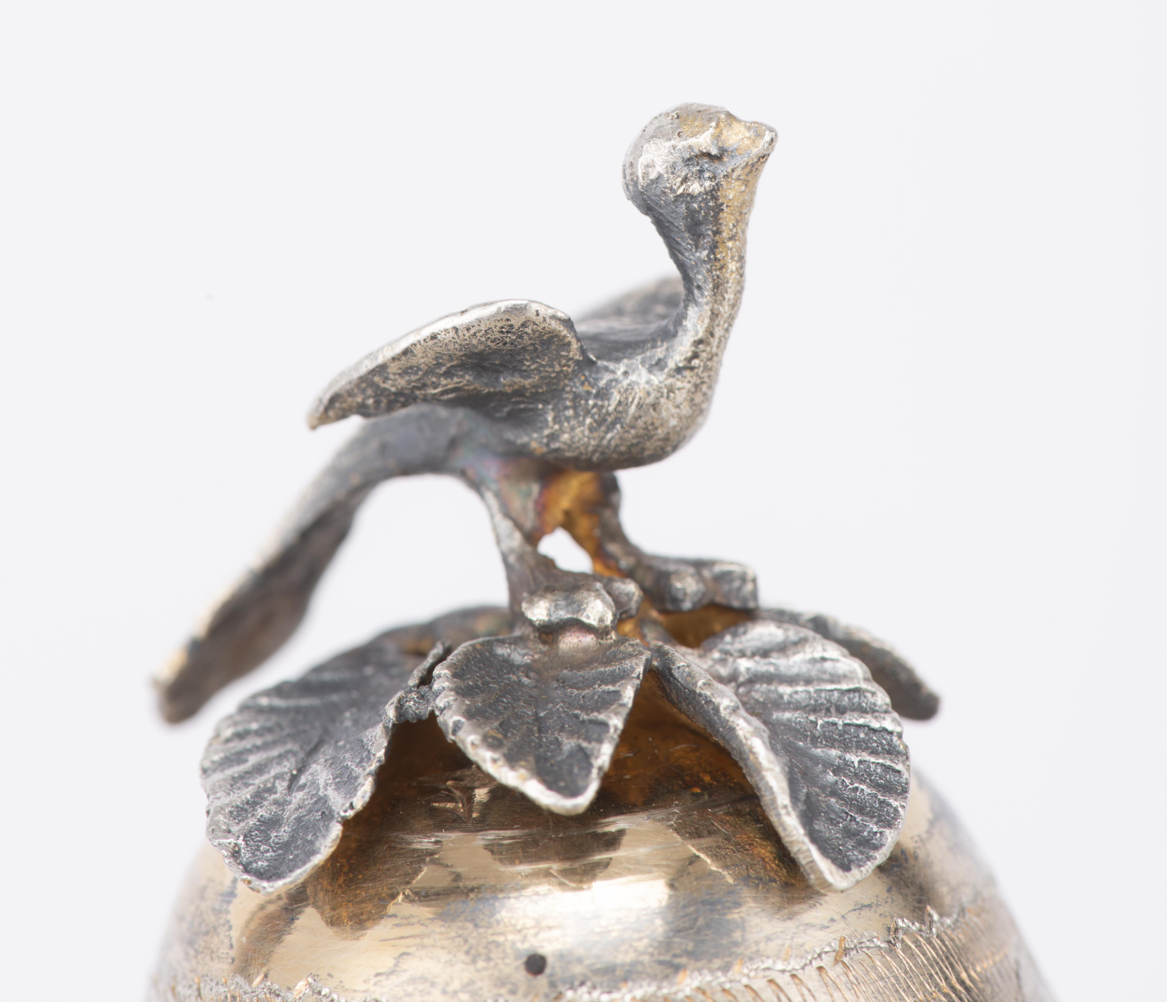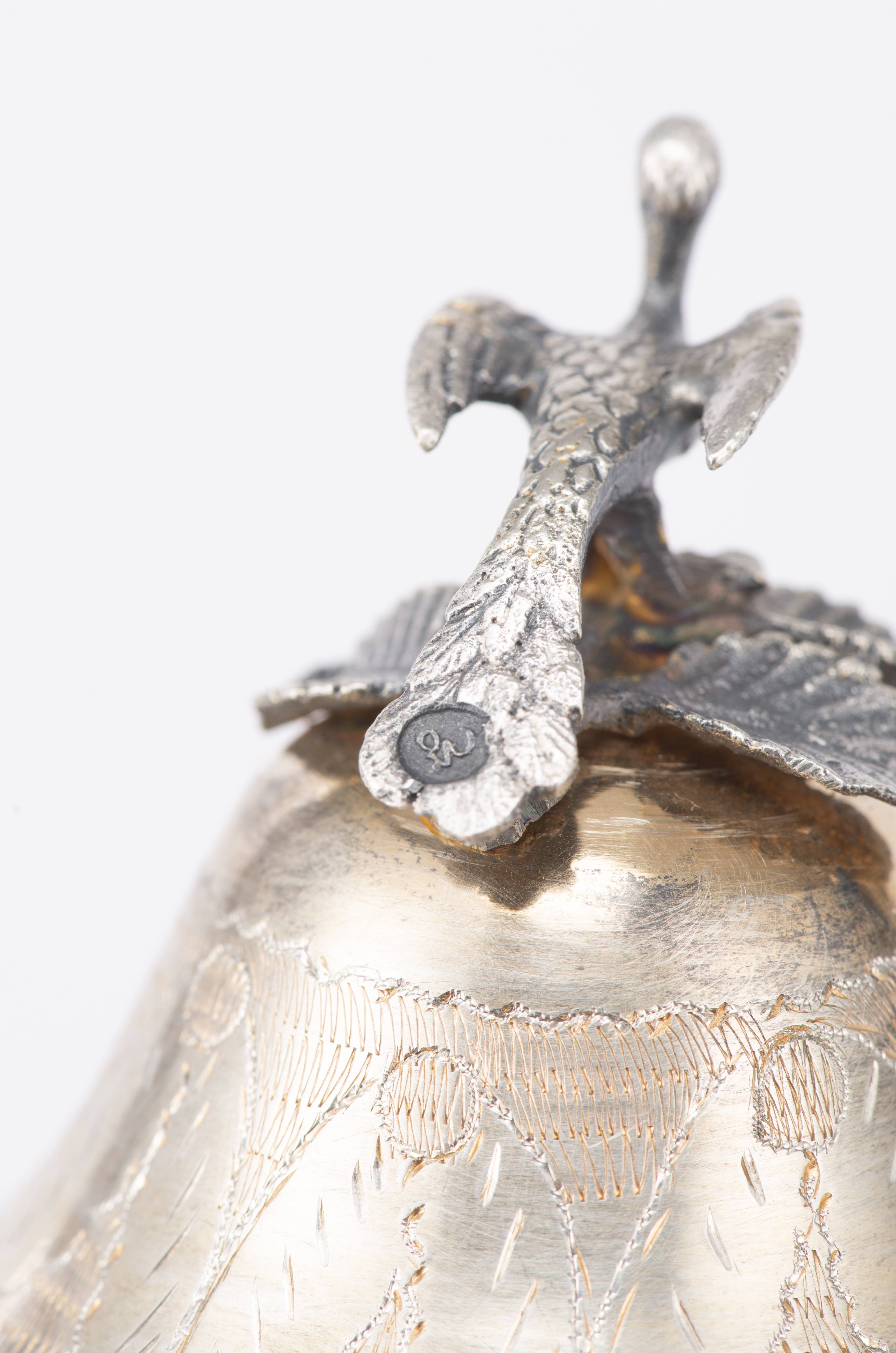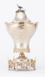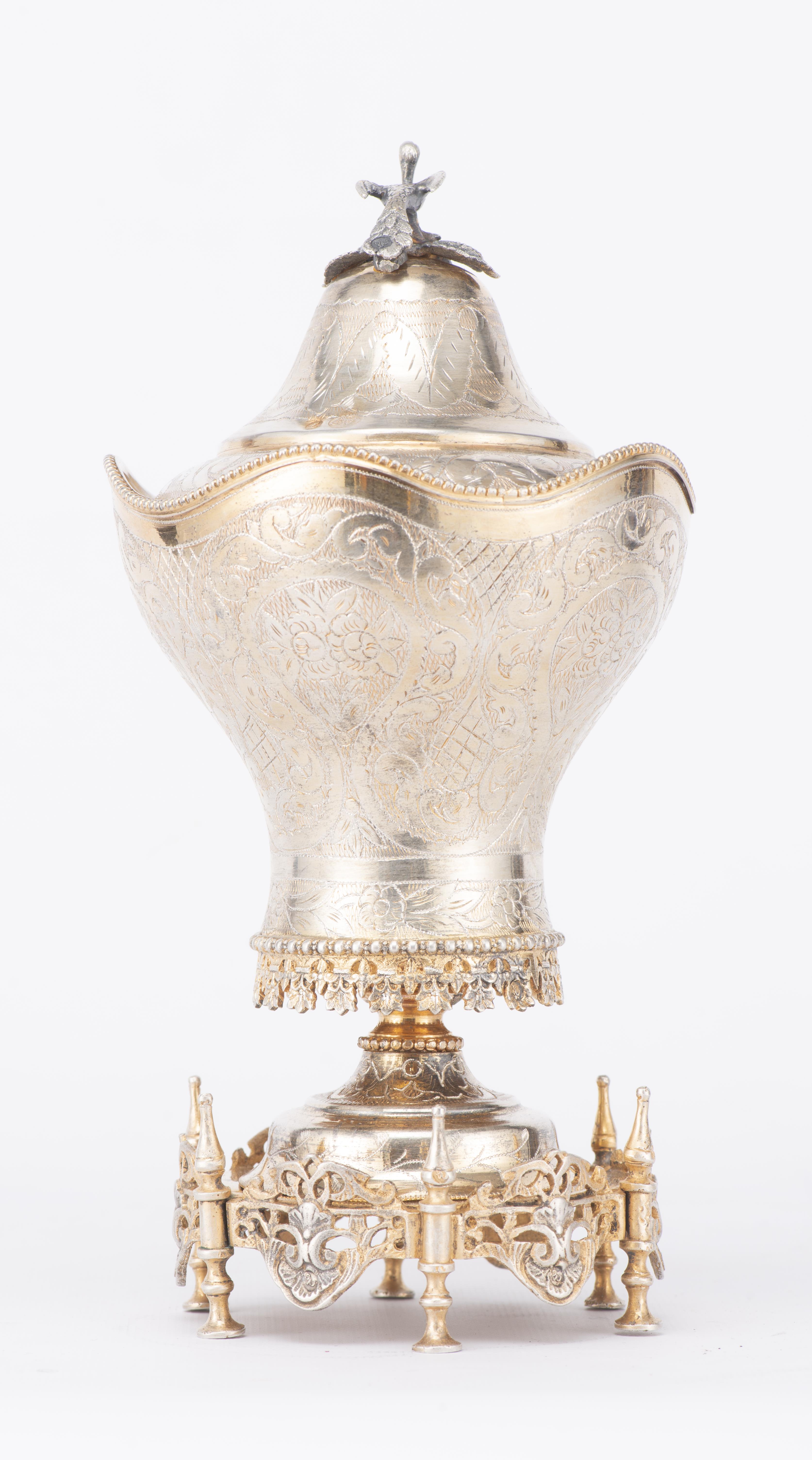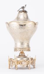 Coupe sur pied en argent .800 de Turquie à couvercle, décor floral et feuillagé, couvercle surmonté d'une prise en forme d'oiseau, Empire ottoman, XIXe.