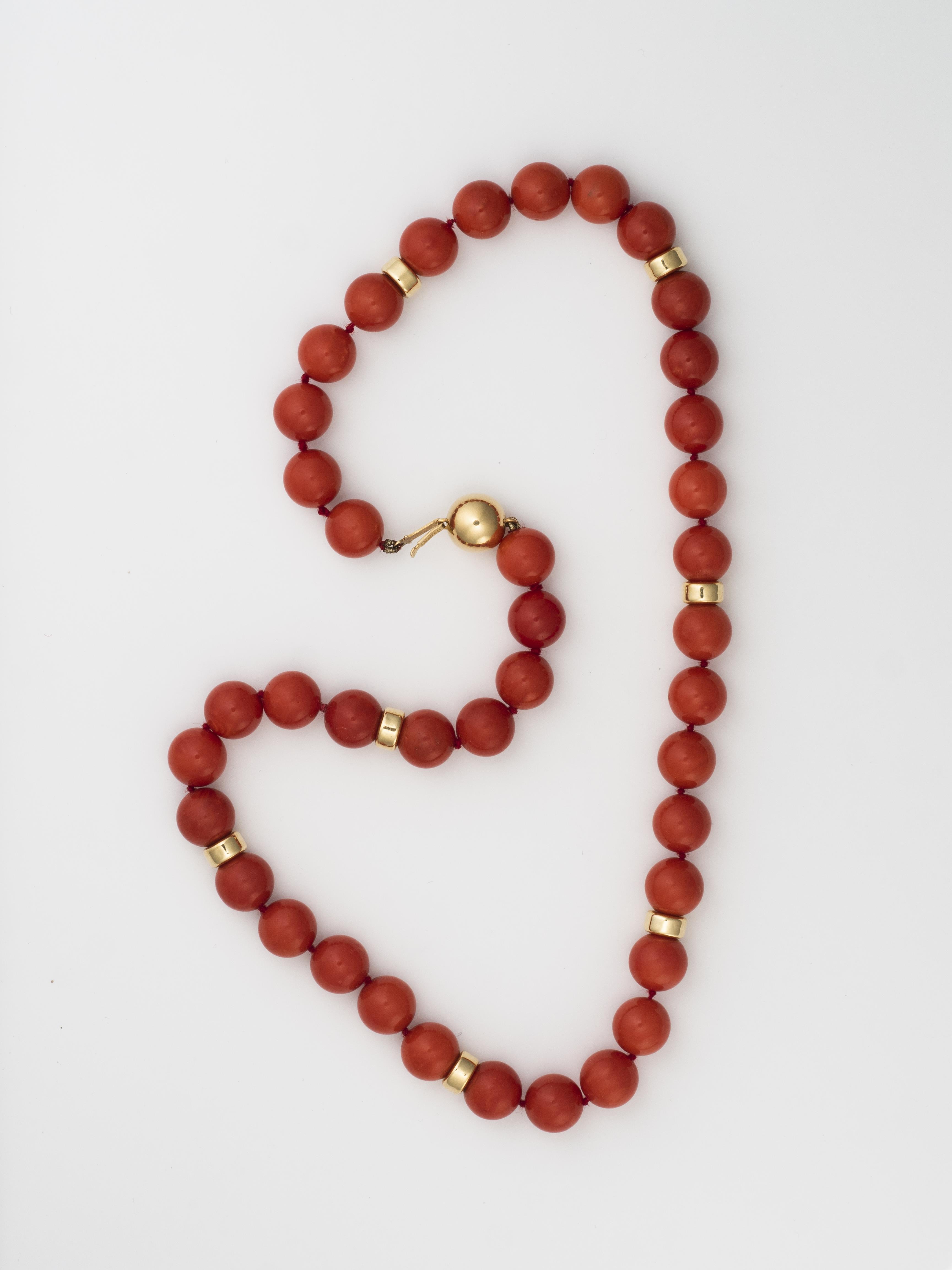 Collier en corail rouge et or jaune .750.