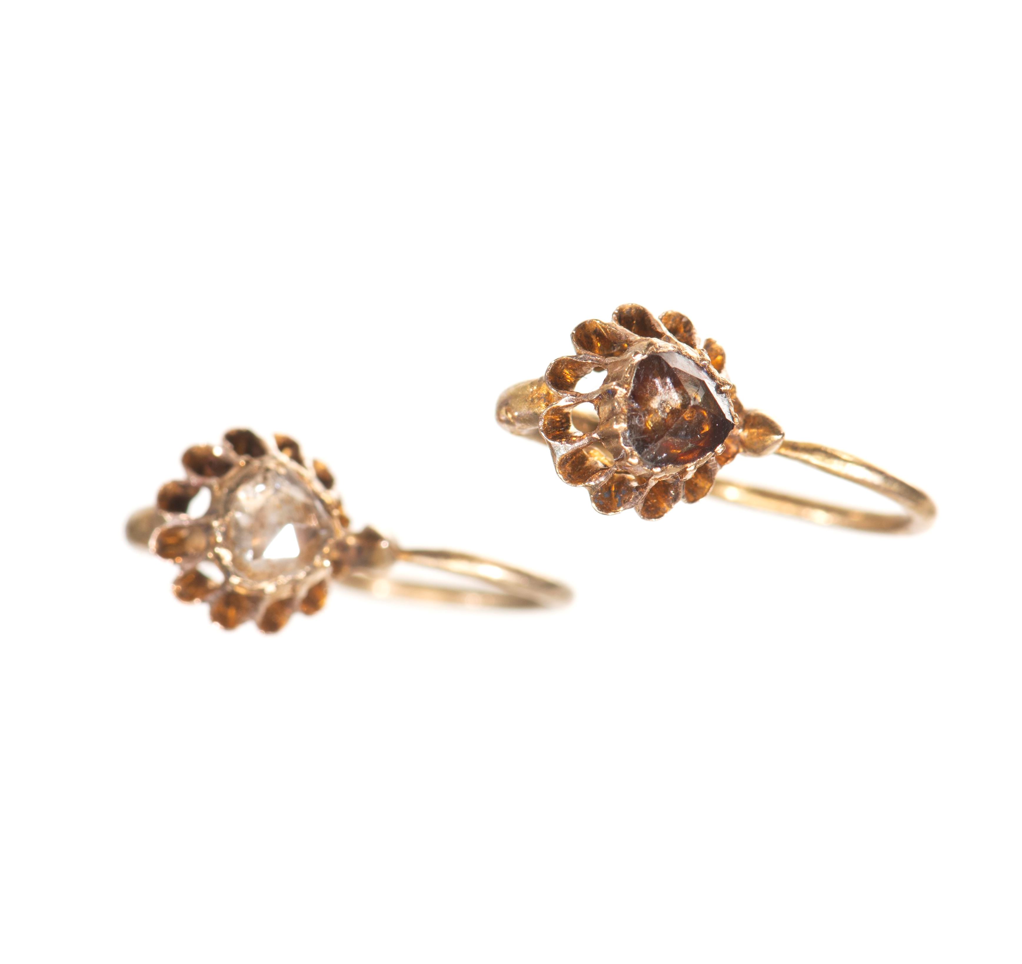 Boucles d'oreilles dormeuses en or jaune .585 serties de diamants de taille rose pour un total de 0.40 ct.